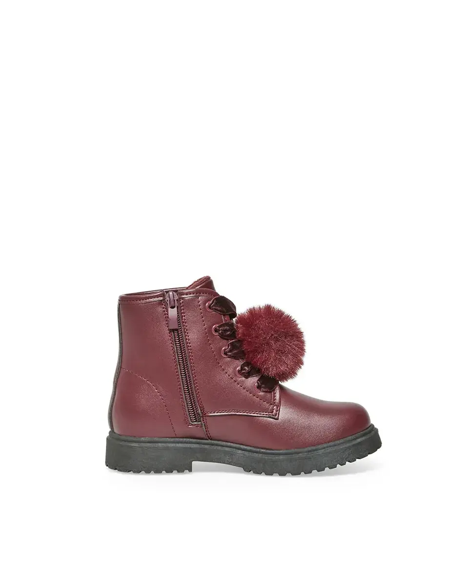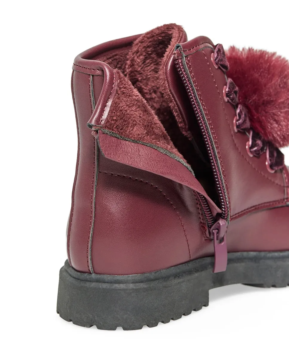 Ботинок на шнуровке спереди с помпонами. Боковая молния и мягкая внутренняя подкладка.