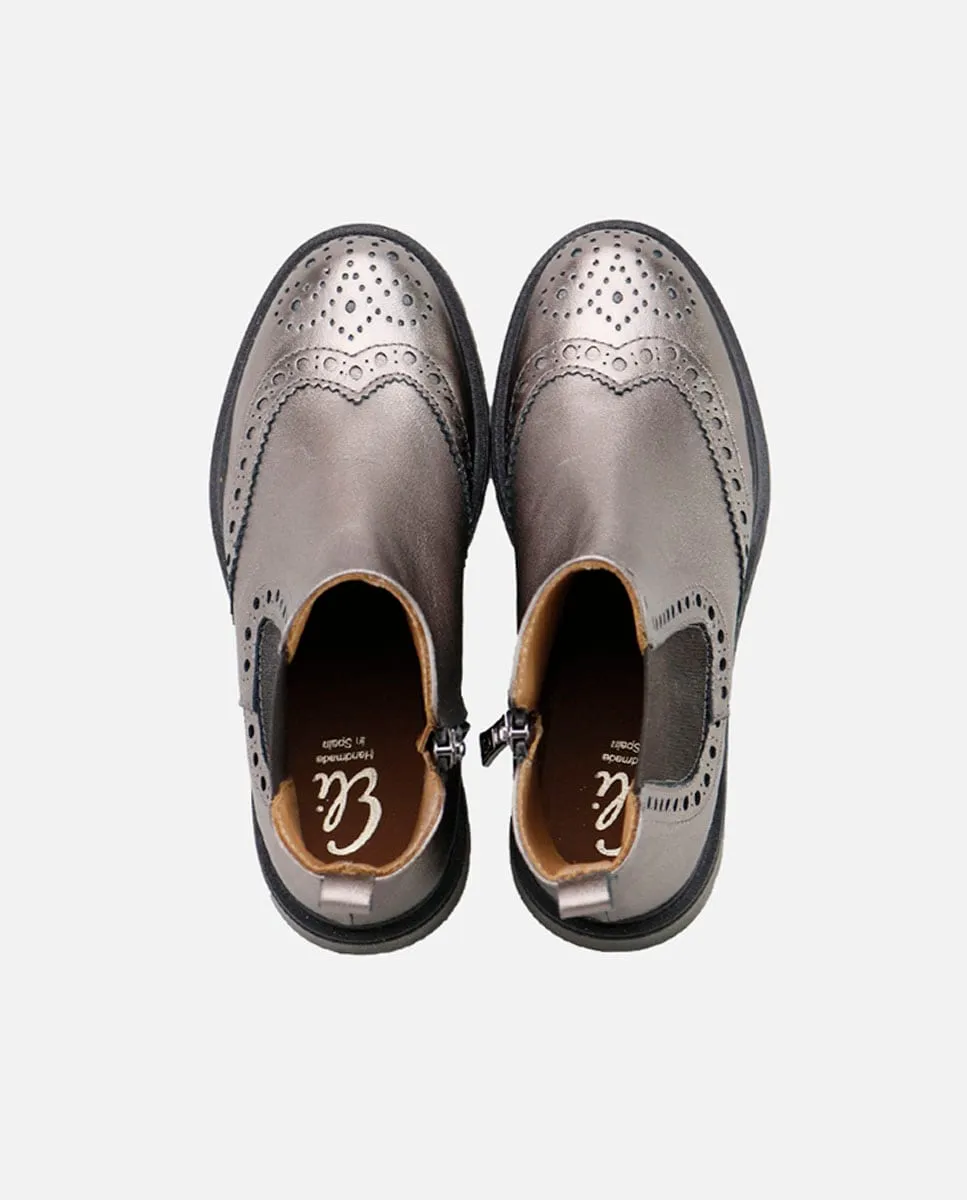Классические челси для самых взыскательных. С этими ботинками высочайшего качества мы хотим, чтобы ноги Эли были в тренде, но при этом защищены и удобны, сохраняя фирменный стиль. На первый взгляд они нравятся своим классическим стилем, но именно наложенные детали и перфорация делают модель непревзойденной. Доступны в нескольких цветах до размера 41. Изготовлены из высококачественной коровьей кожи, с резиновой подошвой и дышащей подкладкой из коровьей кожи, что предотвращает пот и поддерживает ноги при оптимальной температуре. Идеальны, чтобы девочка и мама могли носить одну модель. Их кожа и блеск, а также оформление с украшениями и перфорацией придают им идеальный вид. Боковая внутренняя молния облегчает надевание. Разработаны и изготовлены вручную в Вильене из высококачественных материалов. Сделайте ставку на проверенную временем обувь, улучшенную благодаря многолетним традициям, для современных детей и женщин. Качественная обувь - это инвестиции в устойчивое развитие. Сделано вручную в Испании с любовью.