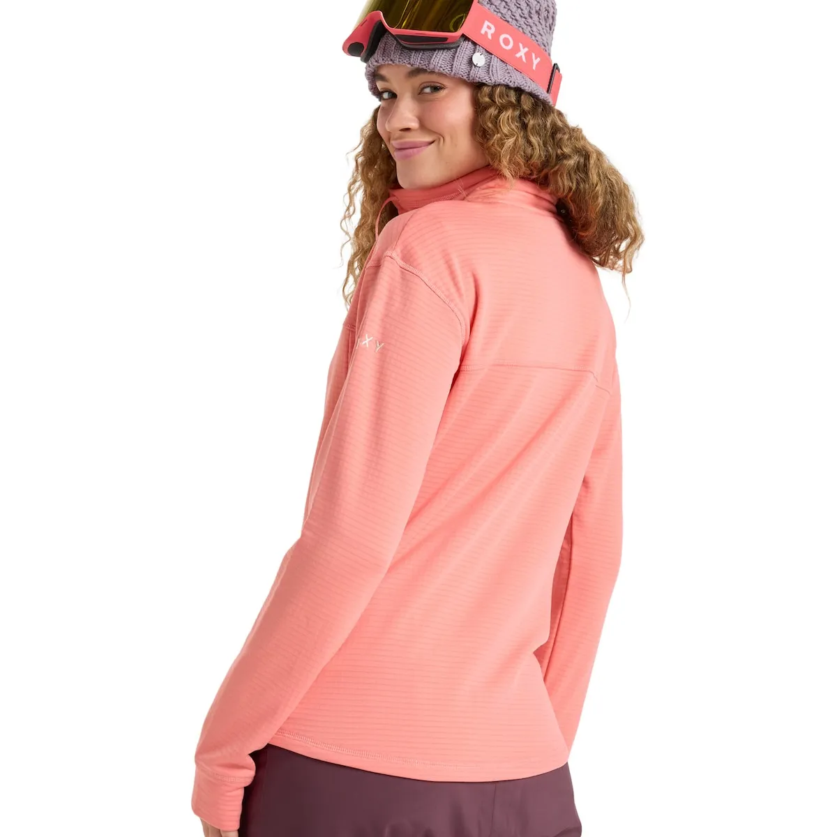 Технический свитшот среднего слоя для женщин. Характеристики включают: Технология: Технология ROXY WarmFlight сочетает в себе отличное удержание тепла с высокой воздухопроницаемостью, малым весом и максимальным комфортом. Крой: обычный. ЭКО-ДЕЙСТВИЯ: изготовлено из переработанных волокон [*процентная доля относится к весу переработанного содержания по отношению к общему весу ткани изделия]. Ткань: вафельный флис из переработанного полиэстера и эластана, 2 кармана для рук, высокий и свободный воротник со шнурками и манжеты с отверстиями для больших пальцев.