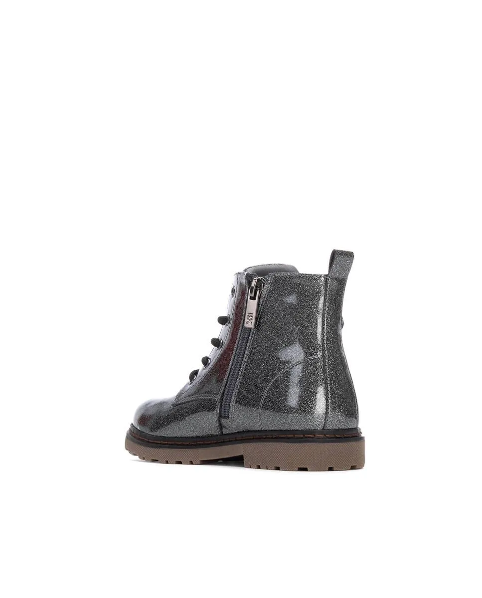 Детские ботинки в военном стиле от бренда Xti Kids. Сшиты из лакированной кожи с глиттером, придающим яркий и современный блеск. На боковой стороне имеется декоративная нашивка в виде животного-ежика, которая добавляет забавный и оригинальный элемент дизайну. Резиновая подошва обеспечивает комфорт и хорошее сцепление. Идеально подходит для образа с индивидуальностью и уникальным стилем.