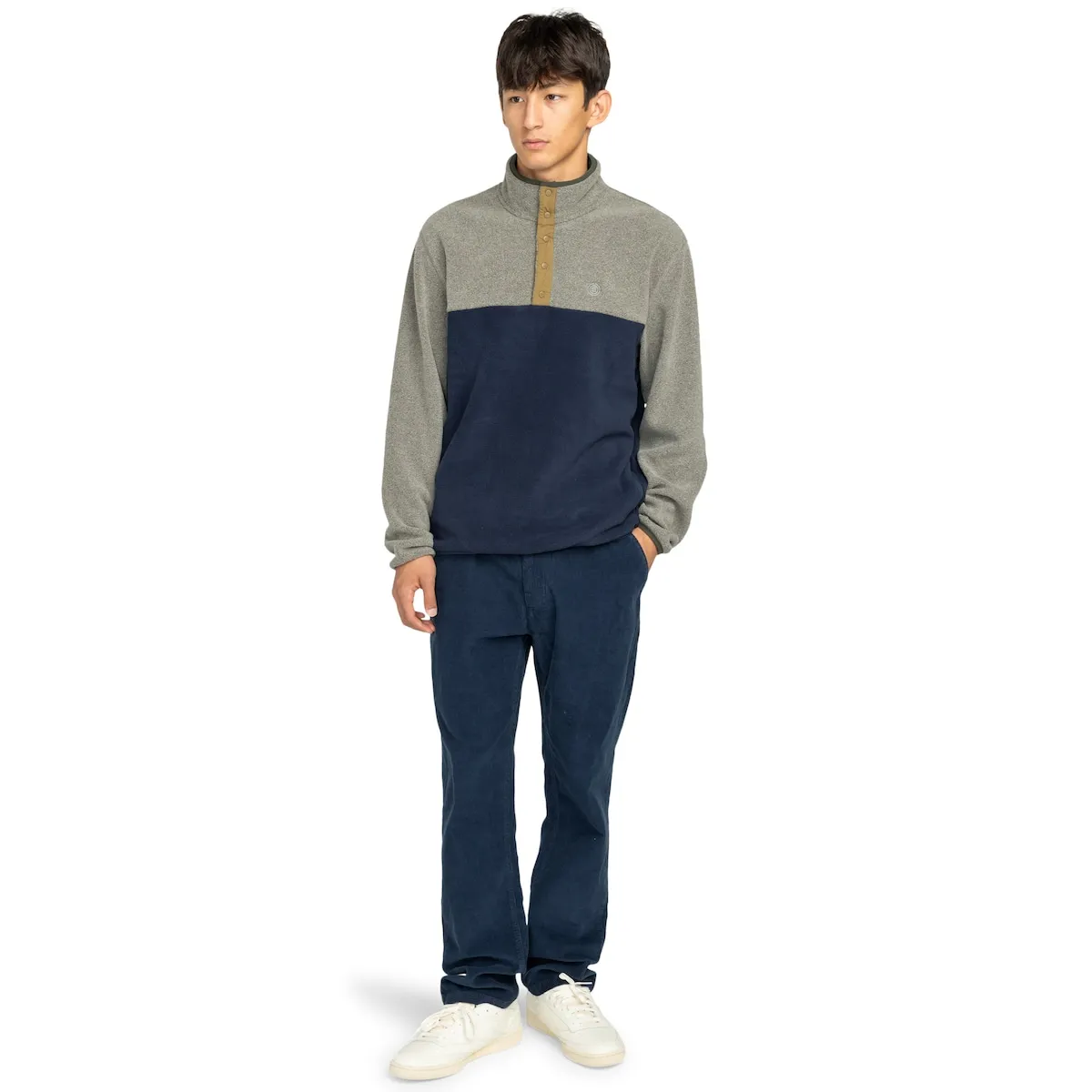 Мужская флисовая кофта на кнопках. Особенности включают: Conscious by Nature: переработанный полиэстер, Ткань: переработанный полиэстер, Флис, Плотность ткани: 280 г/м², Покрой: стандартный, Внутренняя ткань: без подкладки, Застежка: на кнопках, Карманы: боковые карманы и вышитый значок на груди, прямоугольная этикетка сбоку.