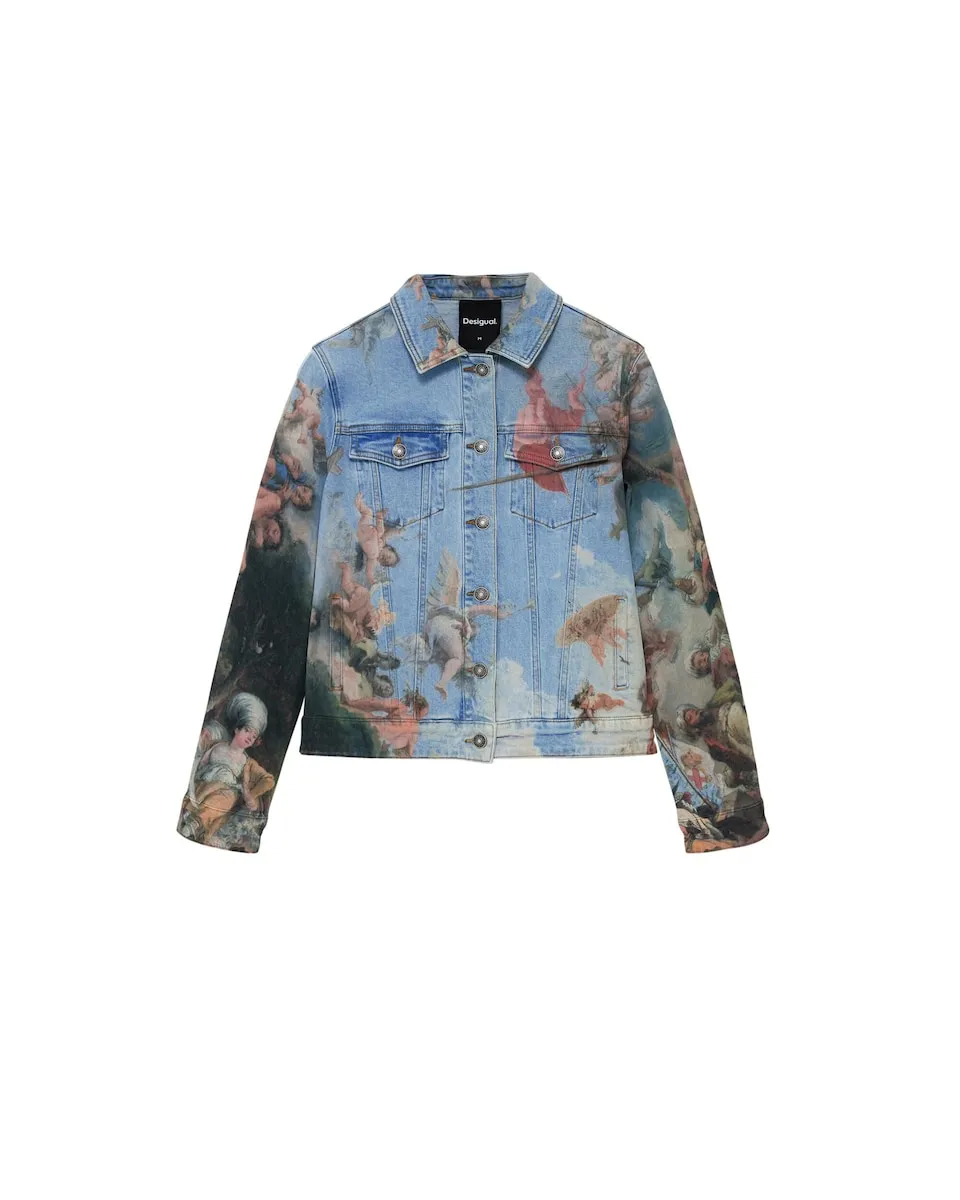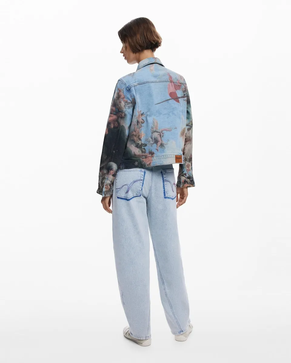 Джинсовая куртка с карманами и деталями с изображениями в стиле свежего ренессанса. Цвет: разноцветный. Крой: обычный. Воротник: рубашечный. Рукав: длинный. Длина: короткая. Застежка: на пуговицы. Детали с изображениями в стиле ренессансной живописи. Материал: деним. Разработано в Барселоне. Хлопок BCI. Покупая хлопковые изделия Desigual, вы поддерживаете наши инвестиции в Better Cotton. Этот продукт произведен с использованием системы баланса массы и может не содержать хлопок Better Cotton. bettercotton.org/massbalance.