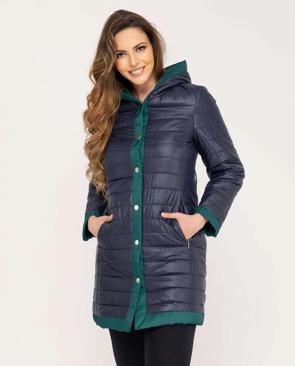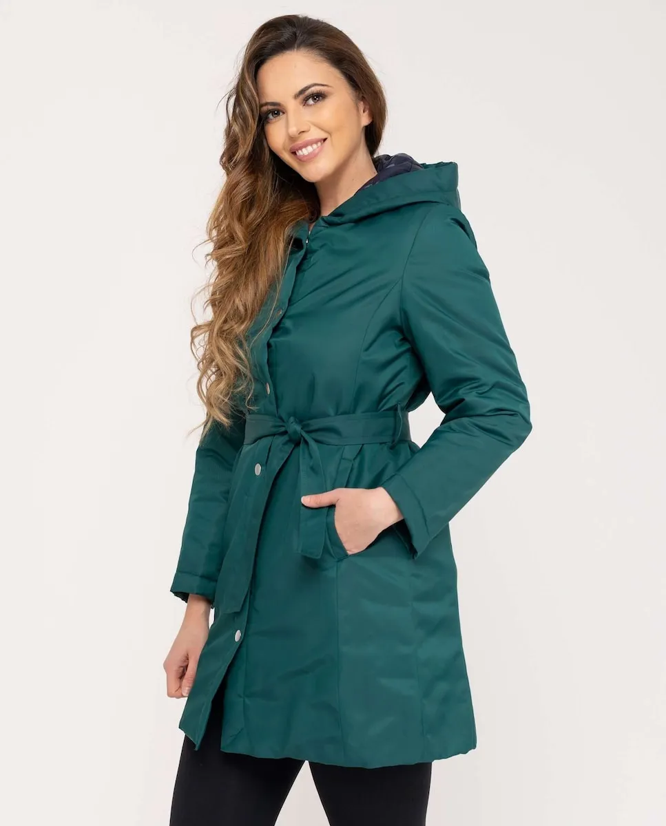 Женский двусторонний плащ с капюшоном Fsh, темно-зеленый
