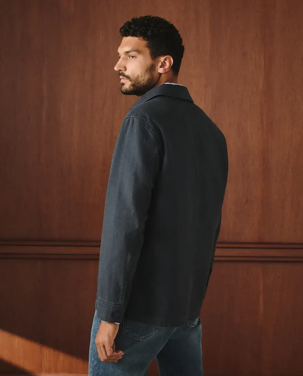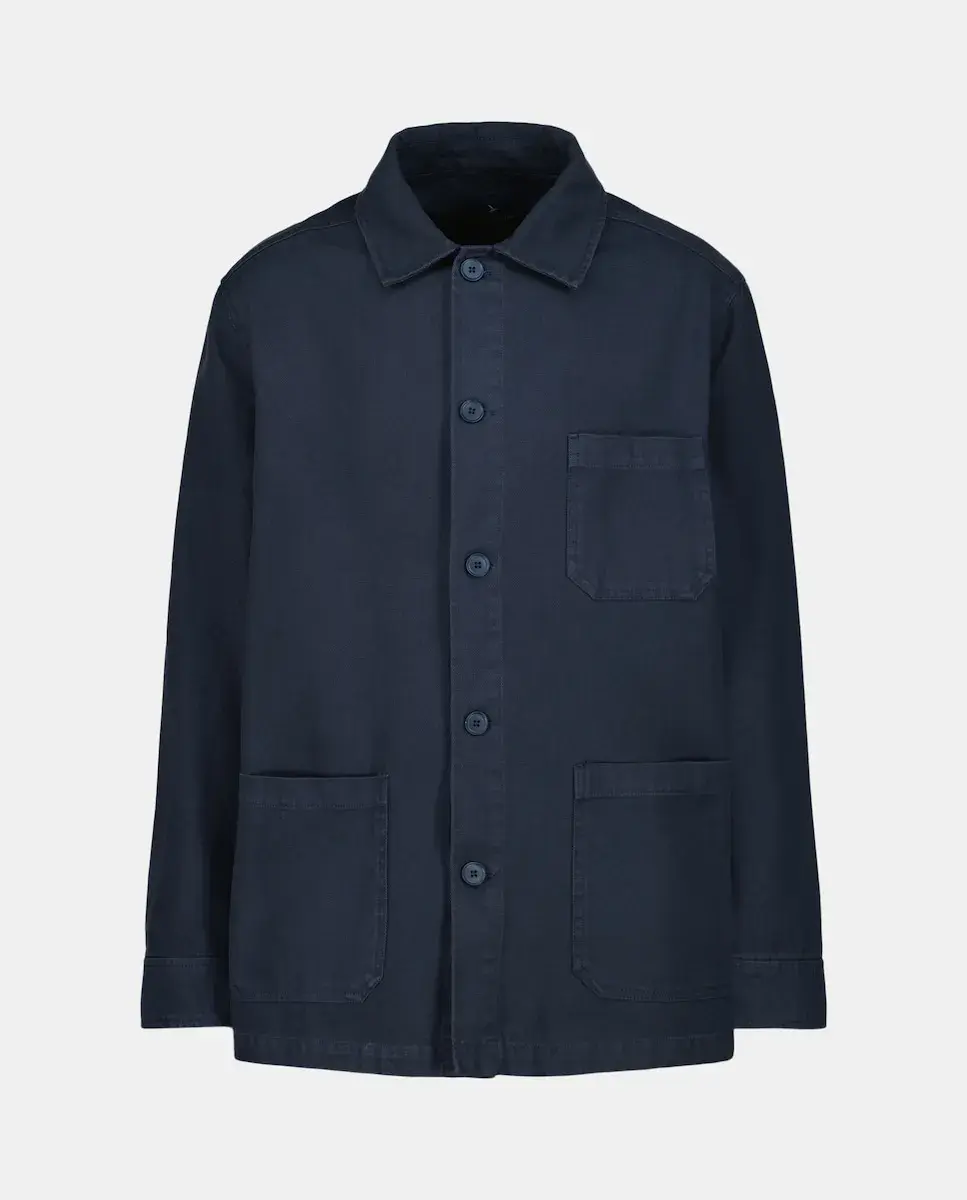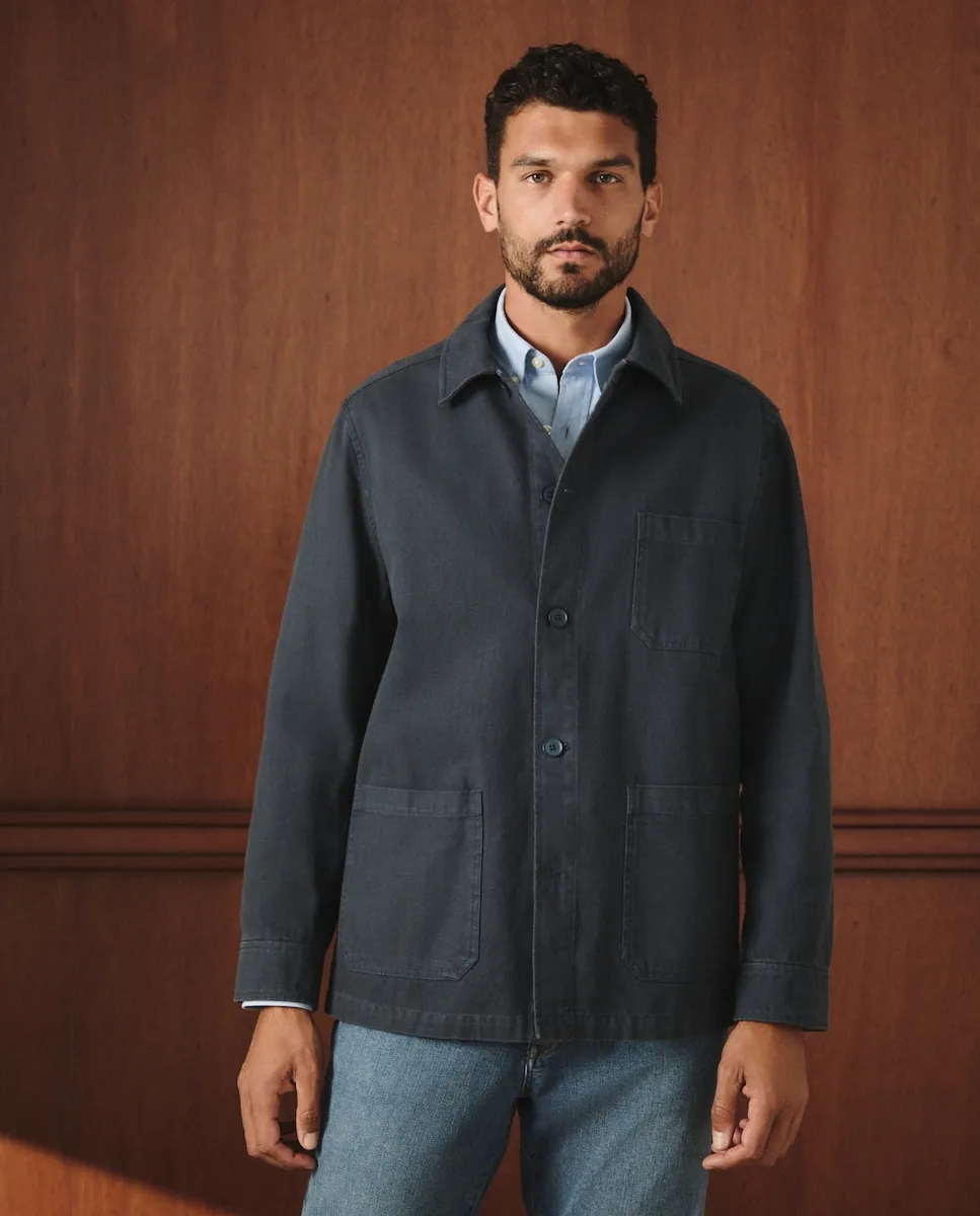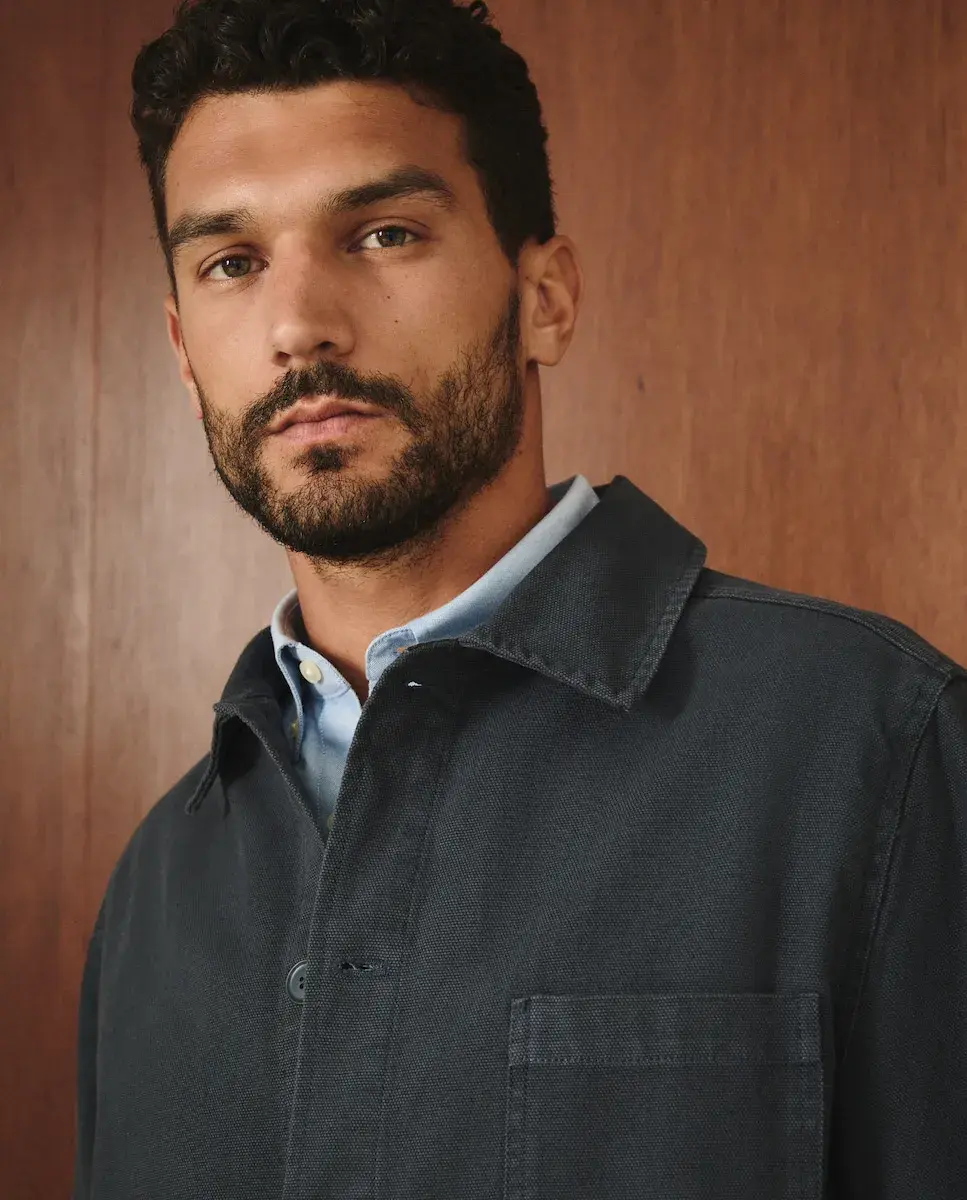 Мужская рабочая куртка, сшитая из хлопчатобумажной ткани.