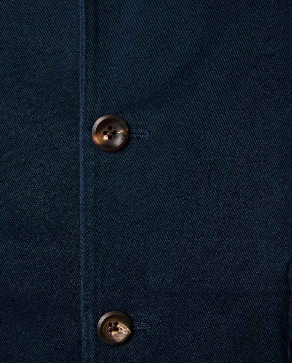 Мужская неструктурированная хлопковая куртка с накладными карманами.