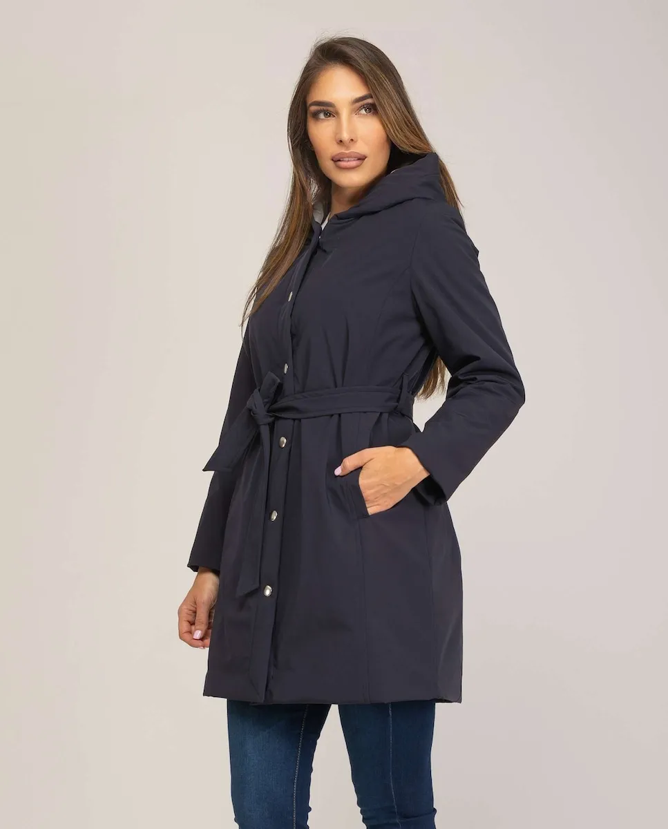 Женский двусторонний плащ с капюшоном Fsh, темно-синий