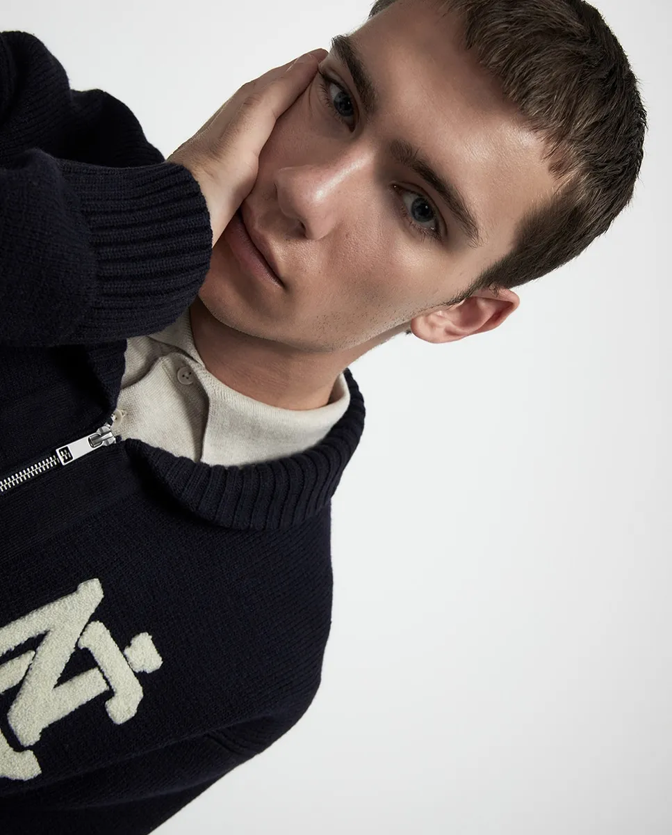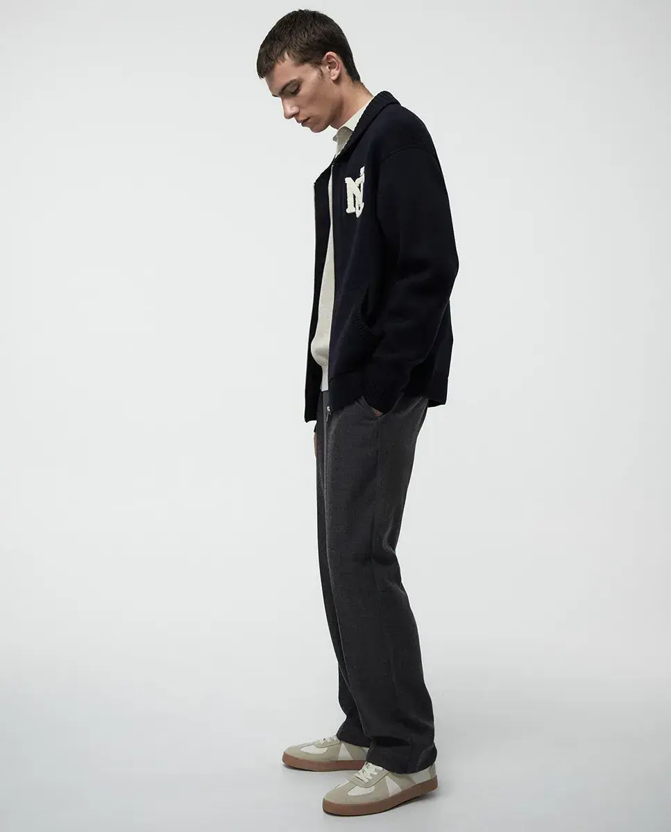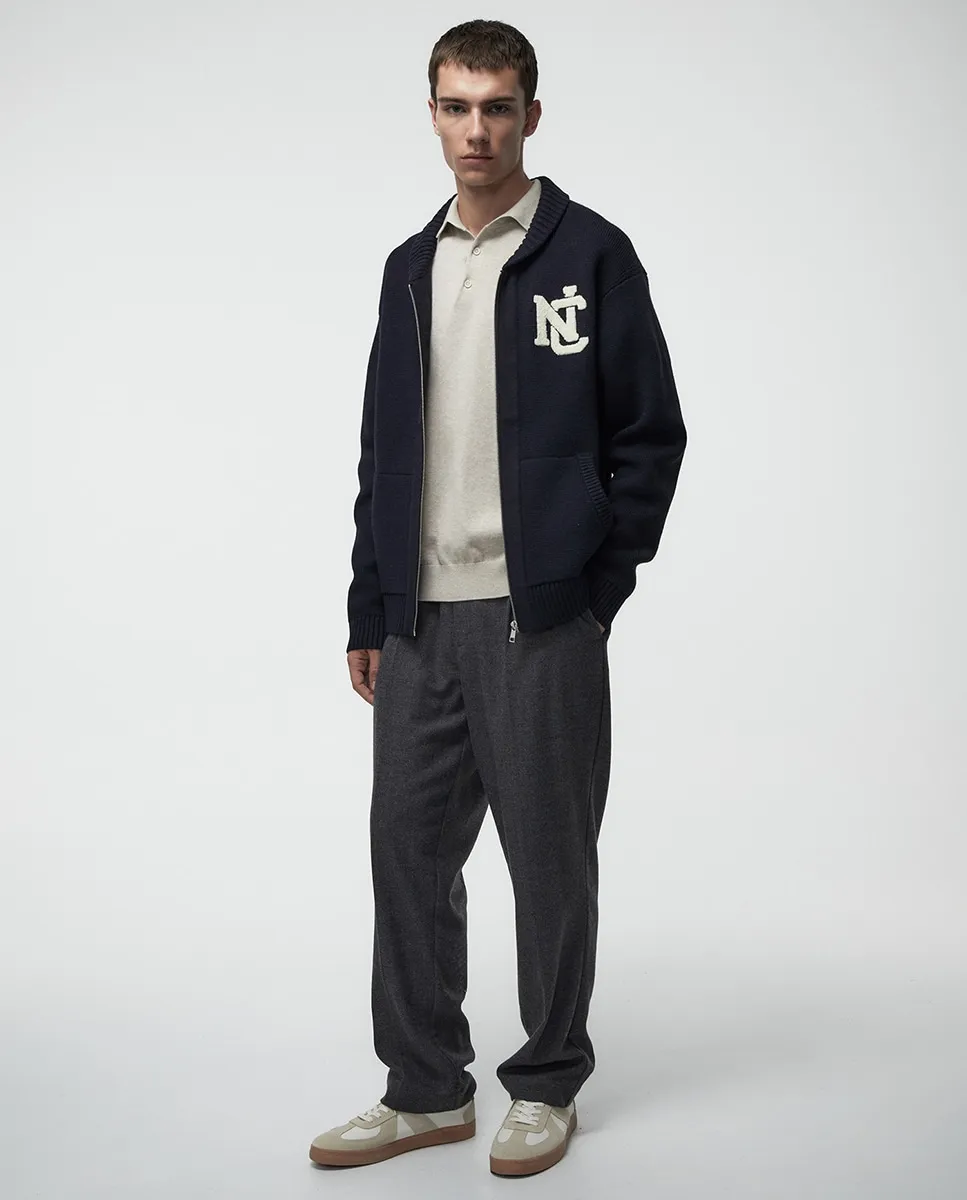 Куртка с длинными рукавами и интарсией. Карманы и застежка-молния