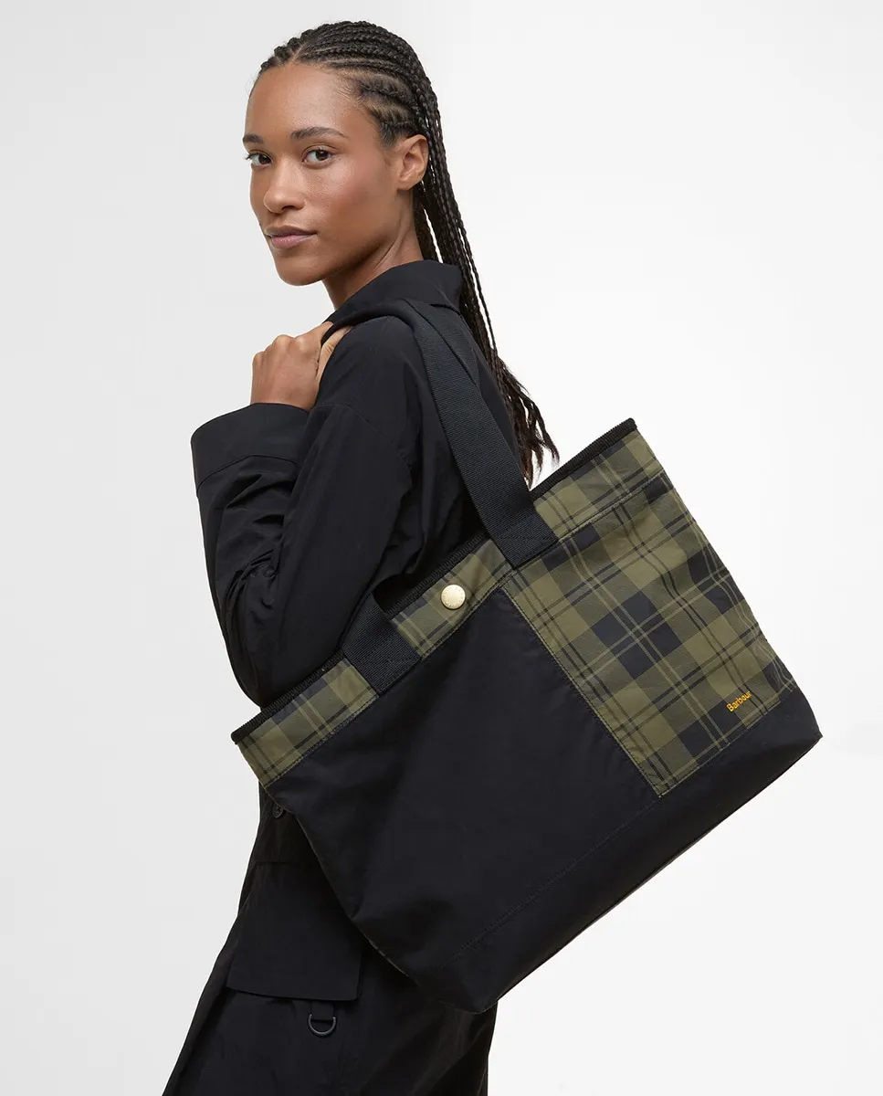 Вощеная сумка-тоут с клетчатыми вставками Barbour, черный