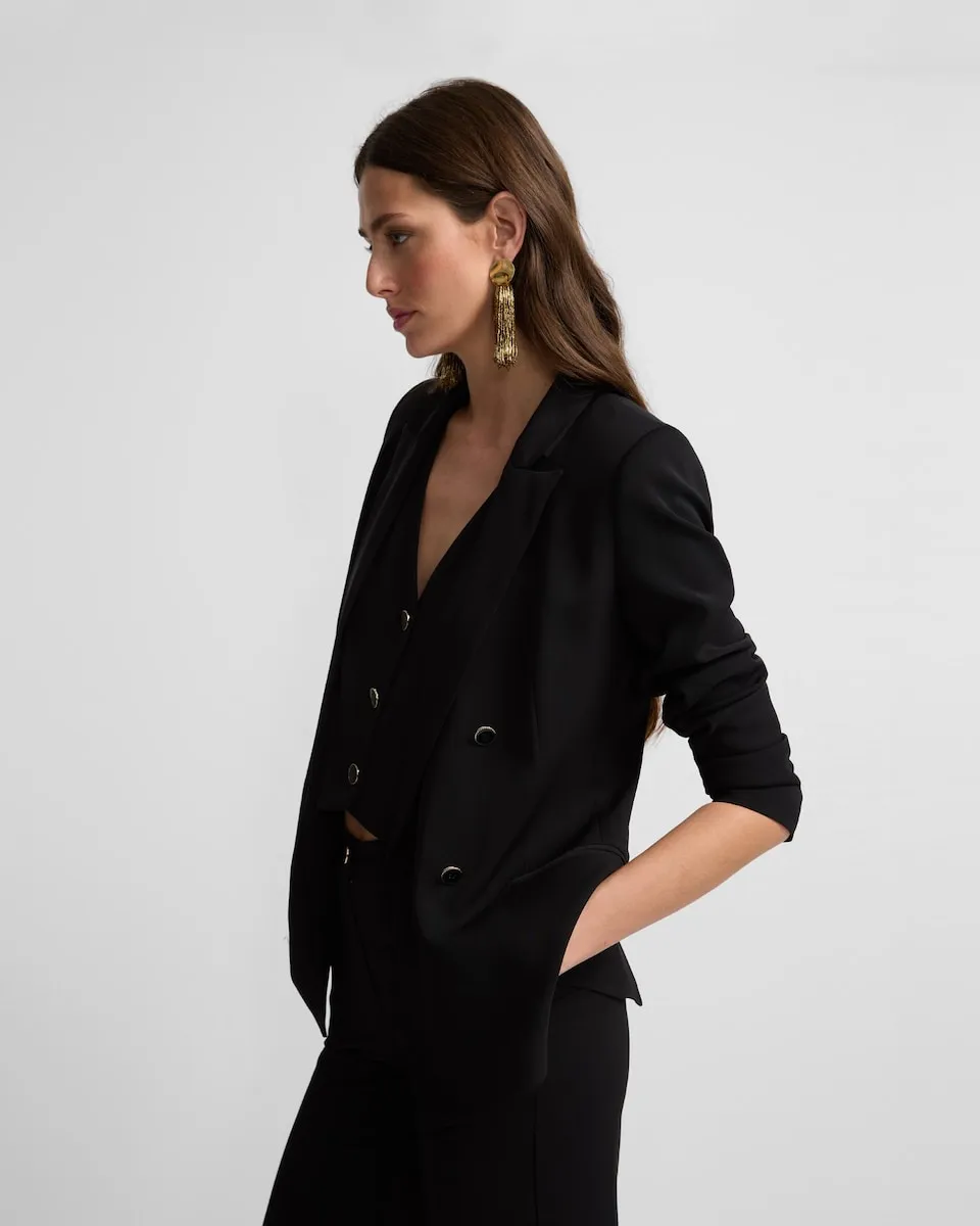 Классическая Америка, изготовленная из полиэстера с обычным кроем. Воротник с лацканами. Индивидуальная застежка. Перекрестная застежка на 4 пуговицы. Легкие подплечники. Вшивные карманы. Внутренняя подкладка. Изготовлено в Испании.