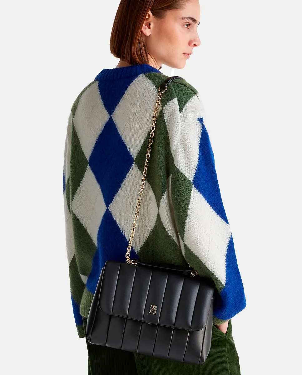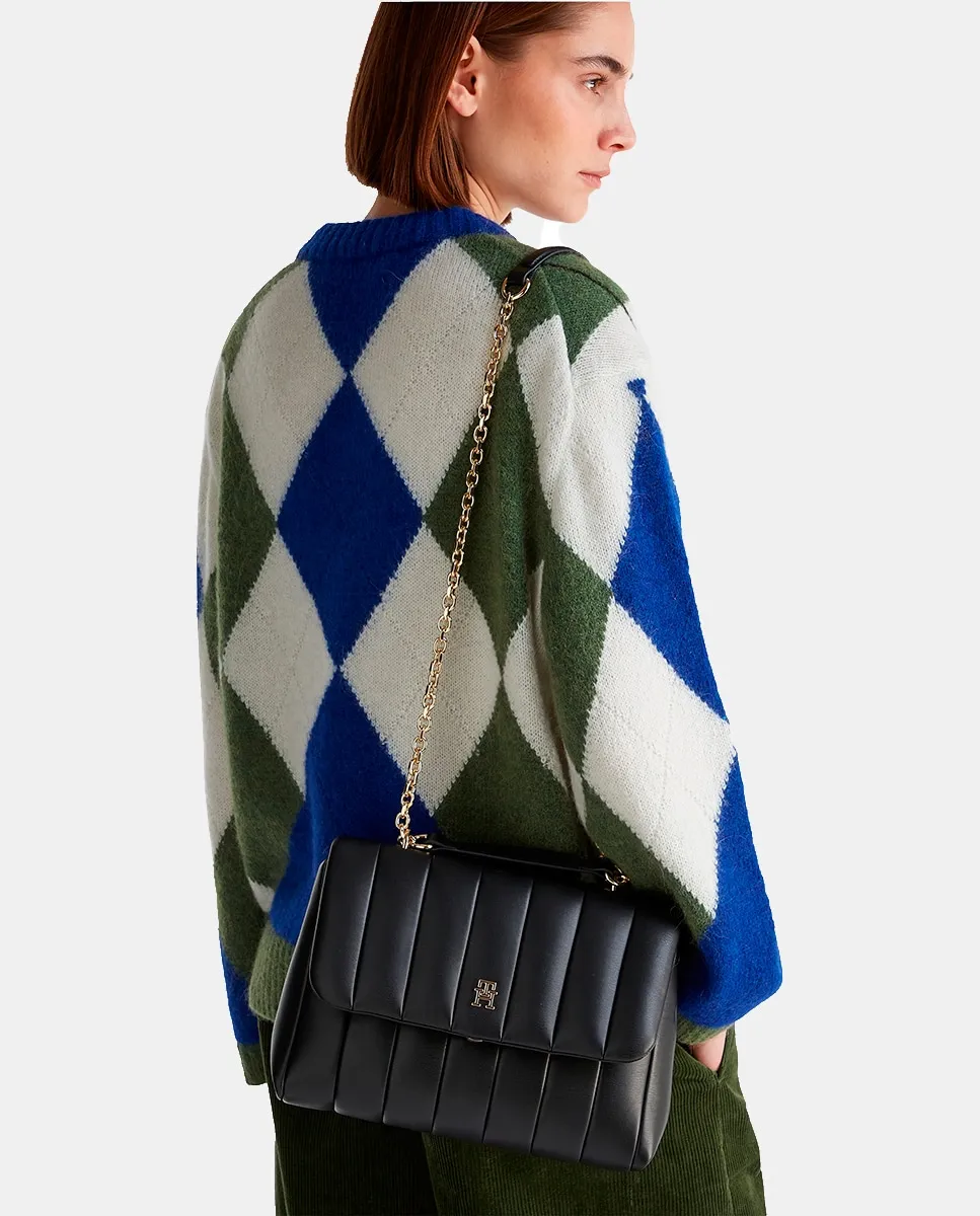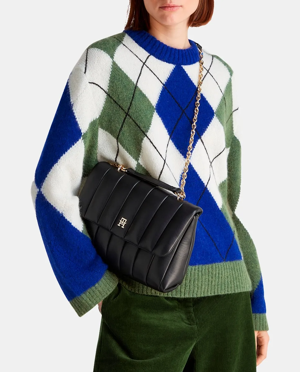 Женская сумка через плечо из экокожи черного цвета. Дизайн с эффектом стеганой ткани, регулируемые ручки и застежка с клапаном. Металлический логотип Tommy Hilfiger на передней части.