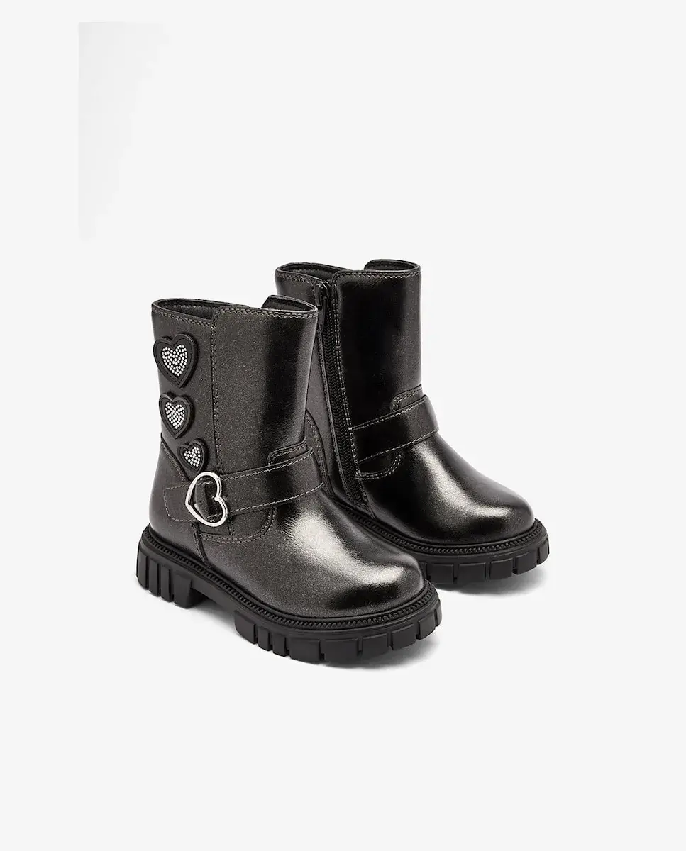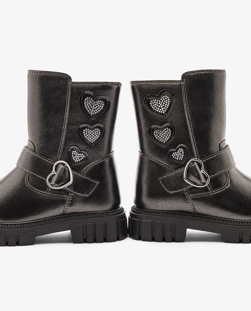 Байкерские ботинки с блестящими мотивами в виде сердец