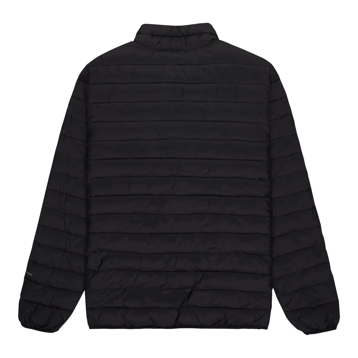 Мужская куртка с изоляцией. Характеристики включают: Подходит для: ежедневных приключений, ПРЕИМУЩЕСТВА, Технология Quiksilver DryFlight защищает от ветра и влаги, Уровень WarmFlight 2/3 очень теплый утеплитель с небольшим объемом, Вес наполнителя: полифил 285 г, Made Better, Изготовлено из переработанного преконсумного нейлона и переработанных полиэфирных волокон из пластиковых бутылок, Долговременная водоотталкивающая обработка без ПФОС, Ткань: переработанный нейлон 37 г/м², ХАРАКТЕРИСТИКИ, Крой: обычный крой, Подкладка: тафта из переработанного полиэстера, Молнии: фронтальная застежка-молния, Карманы: два кармана на молнии для рук, Прочее: подол и манжеты с эластичными краями.