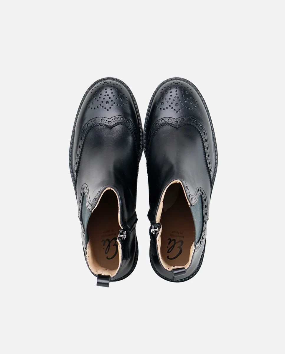 Классические челси для самых взыскательных. С этими ботинками высочайшего качества мы хотим, чтобы ноги Эли были в тренде, но при этом защищены и удобны, сохраняя фирменный стиль. На первый взгляд они нравятся своим классическим стилем, но именно наложенные детали и перфорация делают модель непревзойденной. Доступны в нескольких цветах до размера 41. Изготовлены из высококачественной коровьей кожи, с резиновой подошвой и дышащей подкладкой из коровьей кожи, что предотвращает пот и поддерживает ноги при оптимальной температуре. Идеальны, чтобы девочка и мама могли носить одну модель. Их кожа и блеск, а также оформление с украшениями и перфорацией придают им идеальный вид. Боковая внутренняя молния облегчает надевание. Разработаны и изготовлены вручную в Вильене из высококачественных материалов. Сделайте ставку на проверенную временем обувь, улучшенную благодаря многолетним традициям, для современных детей и женщин. Качественная обувь - это инвестиции в устойчивое развитие. Сделано вручную в Испании с любовью.