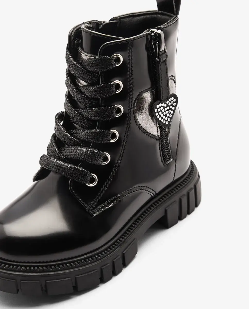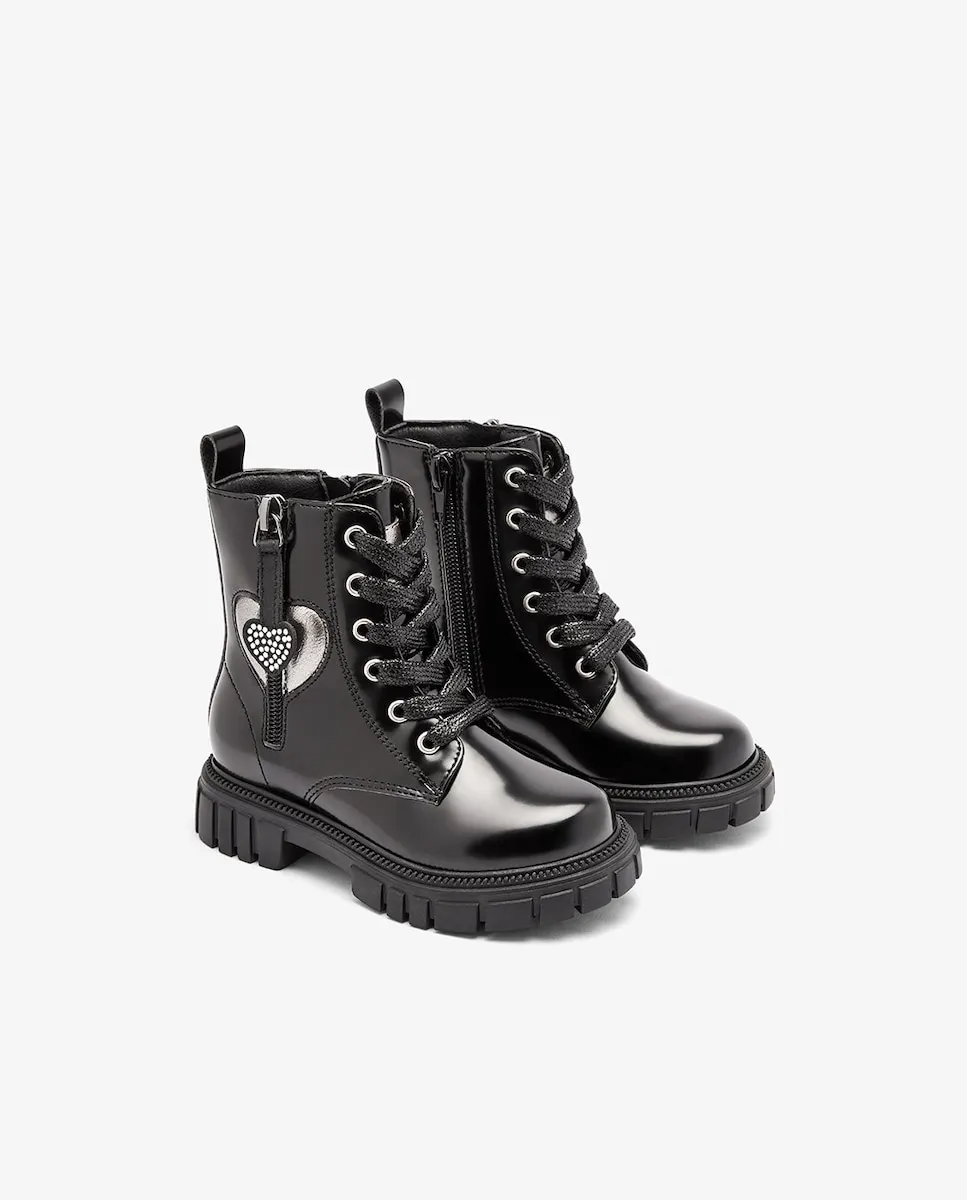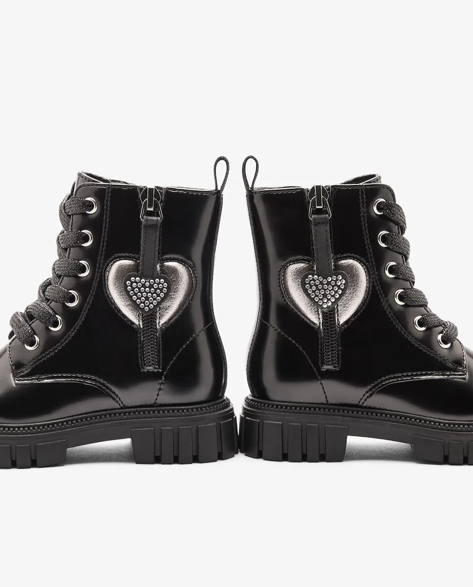 Ботинки combat с деталями в виде сердца с подкладкой и молнией с украшением из страз