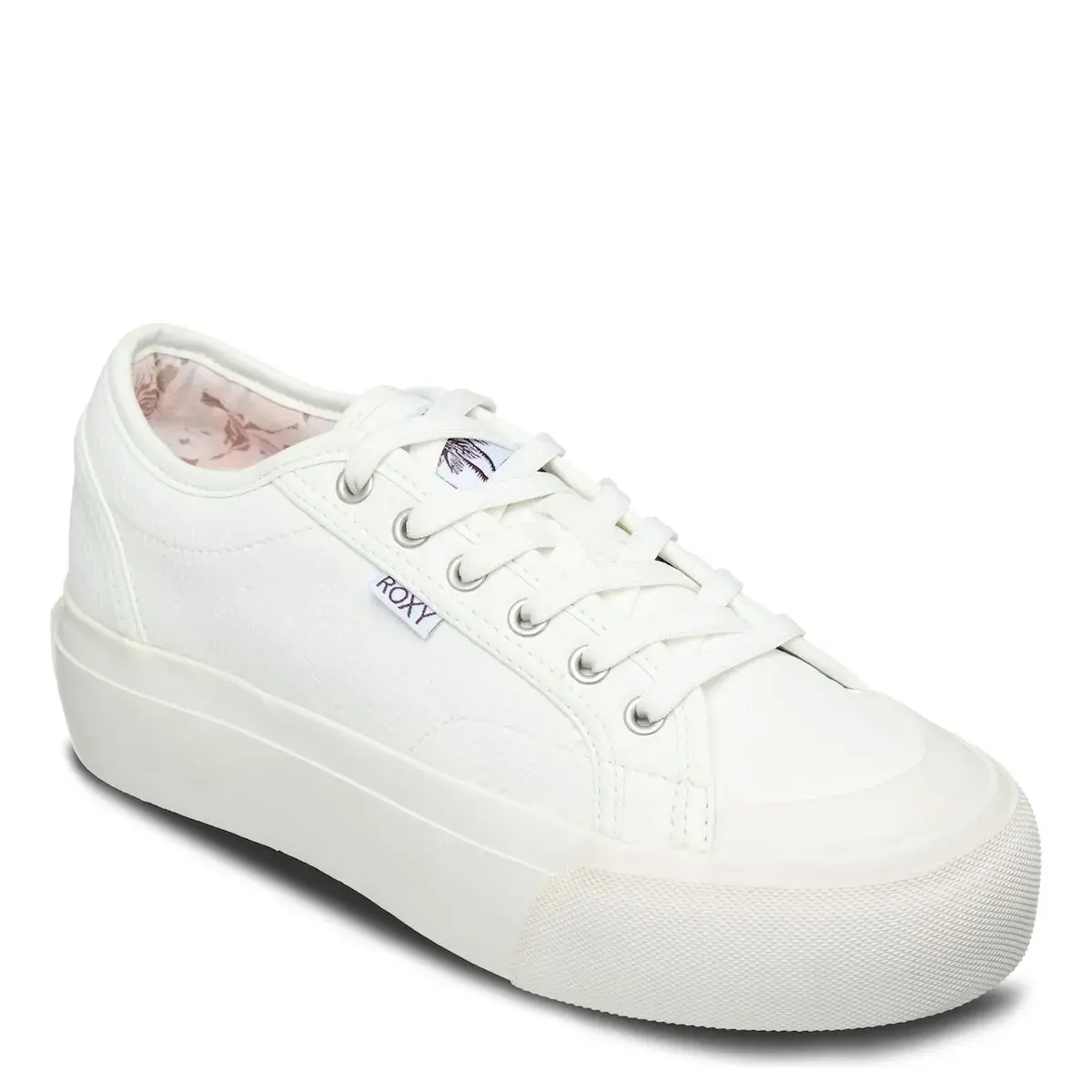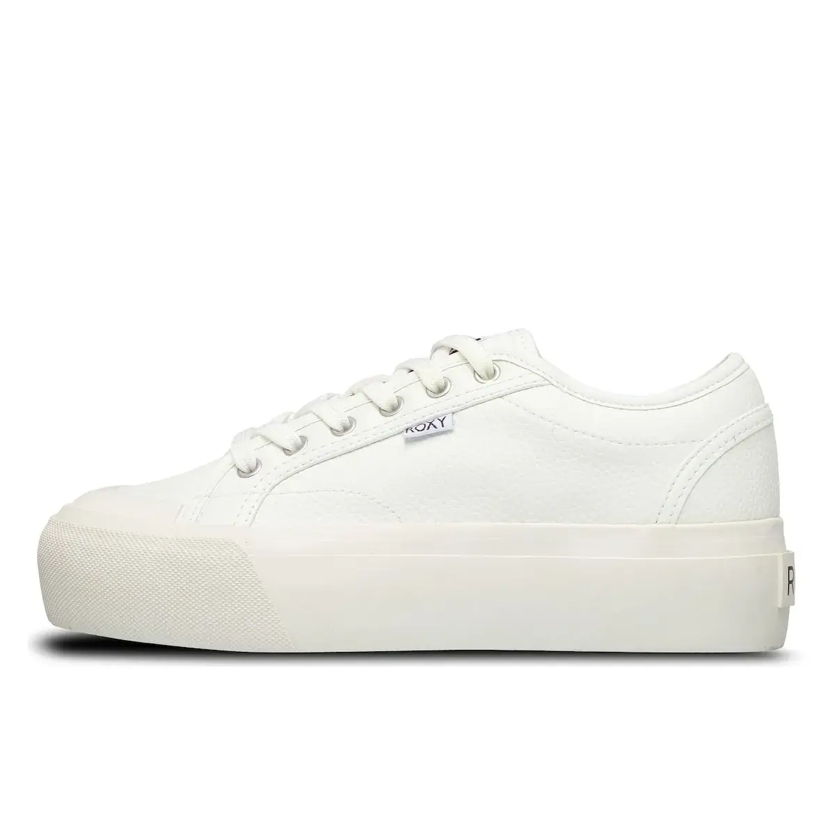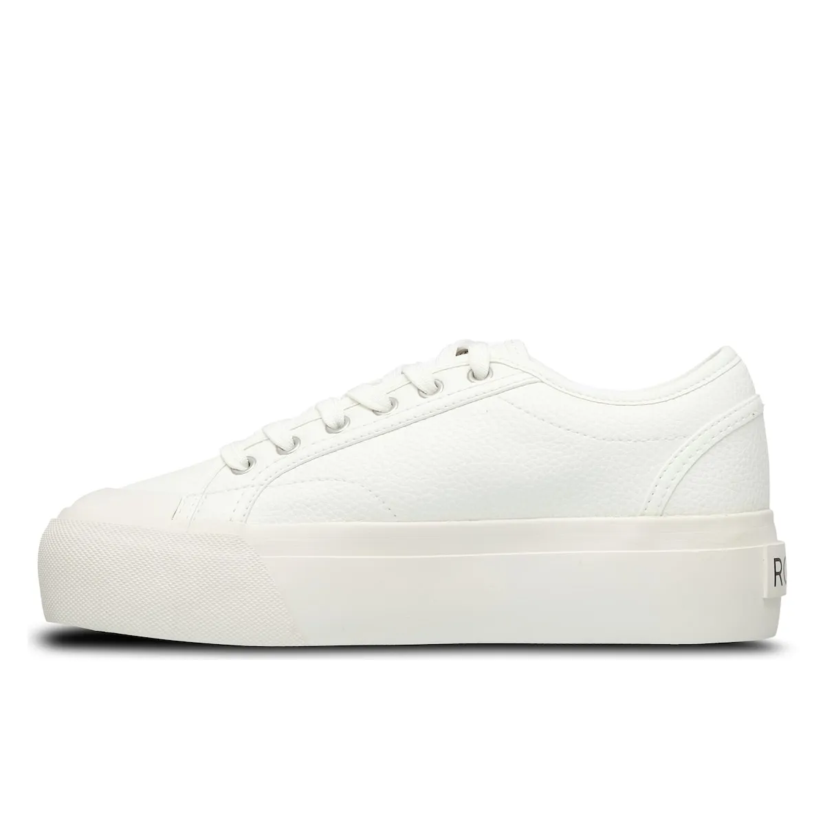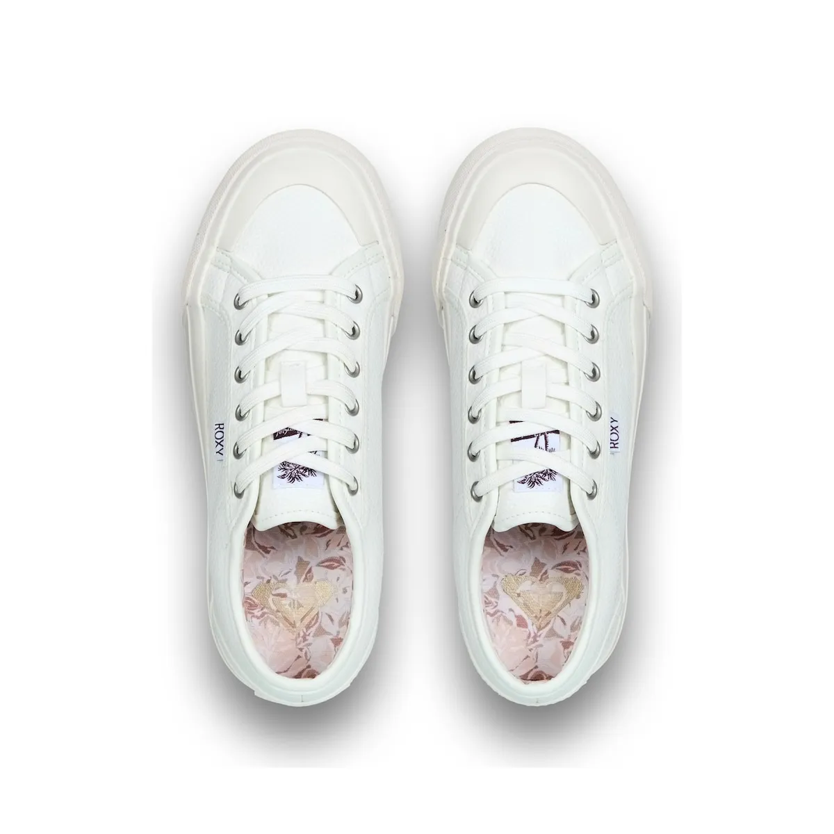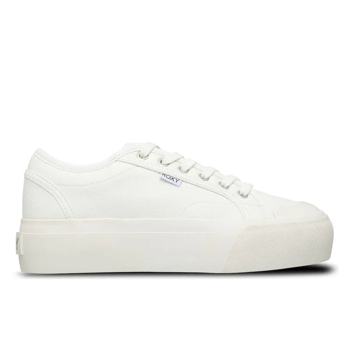 Женские кроссовки. Характеристики включают: Верх: искусственная кожа, Застежка: модель на хлопковых шнурках с деталями на носке, Стелька: внутренняя часть из тканого материала с мягкой стелькой из TPE для большего комфорта, Подошва: платформа из вулканизированной резины с логотипом сердца Roxy.