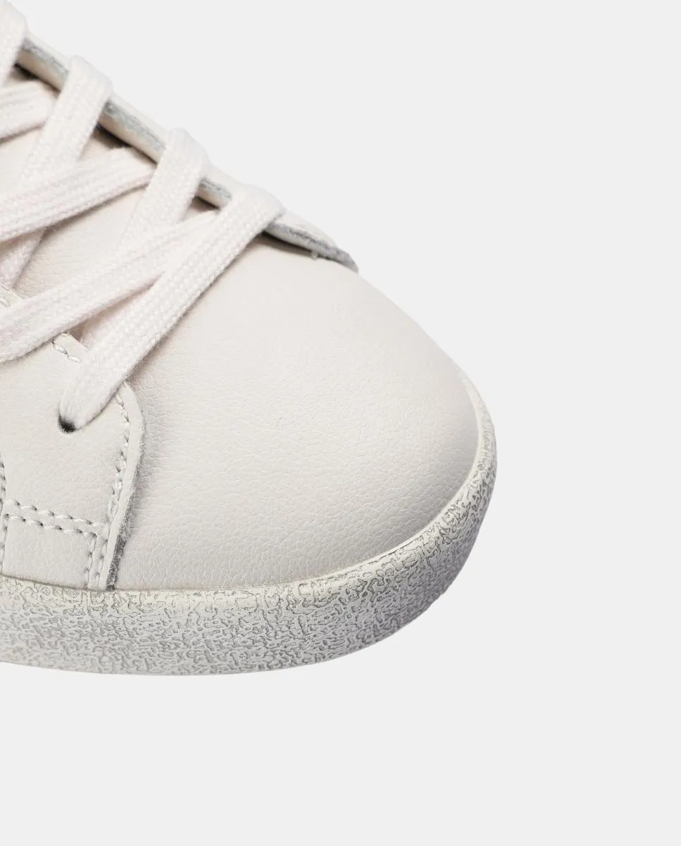 Низкие кроссовки с деталью в виде черепа сбоку. Выполнены из смеси замши и микрофибры с блестящей отделкой. Застежка на шнуровке. Подошва из резины. Контрастная деталь на пятке.