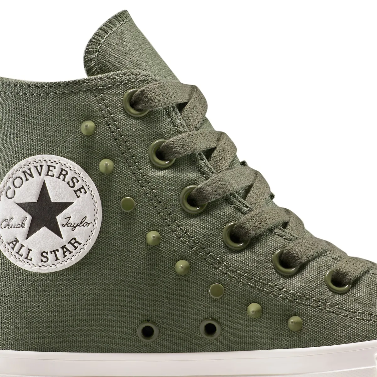 СТИЛЬ, КОТОРЫЙ ВЫДЕЛЯЕТСЯ. Классическая модель Chuck Taylor All Star получает новое смелое воплощение для тех, кто стремится выделяться. Эта версия на высокой подошве из ткани оснащена шипованными заклепками на пятке и боковой части, придавая образу игривый и дерзкий вид, не теряя при этом культовой сущности Converse. Идеальна для тех, кто ищет комфорт с индивидуальностью.