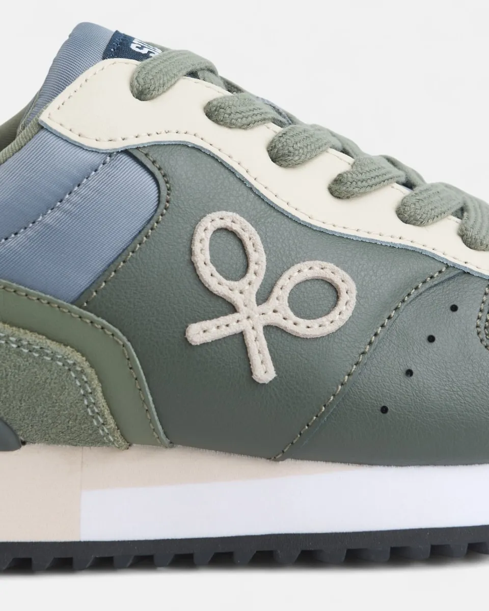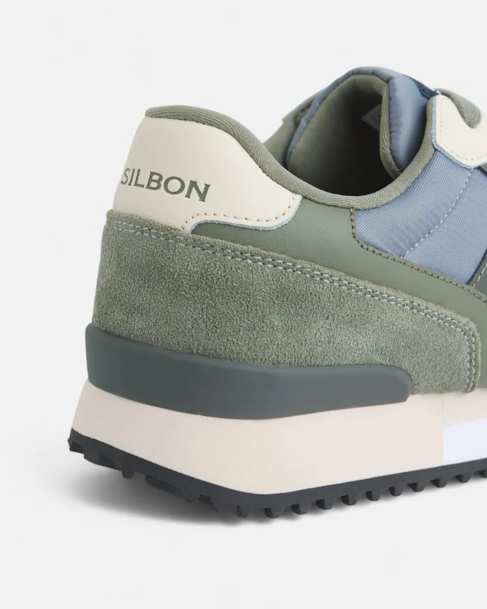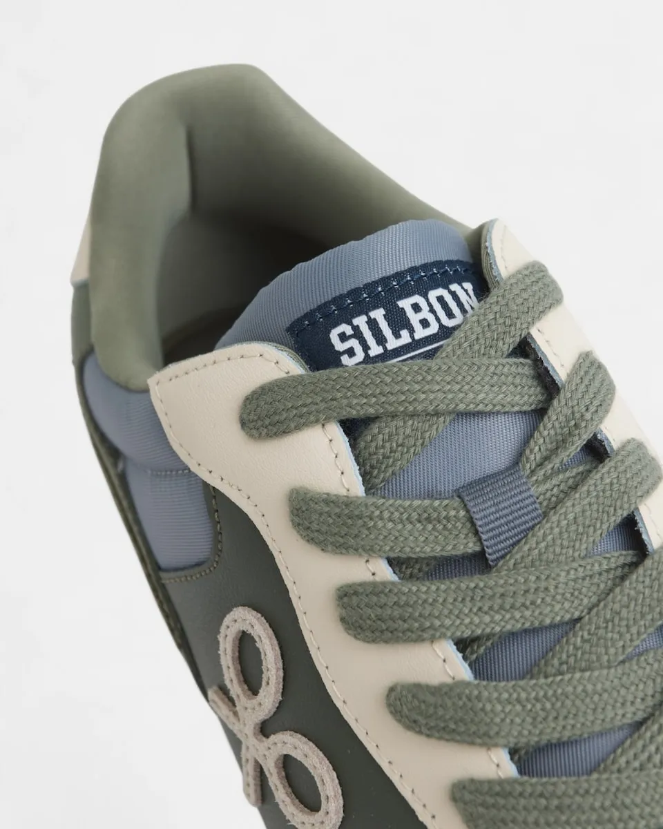 Беговая спортивная обувь из кожи. Имеет боковую аппликацию в виде ракетки и шнуровку. Оснащена удобной резиновой подошвой, мягкой кожаной внутренней частью, персонализированной этикеткой на язычке и выгравированными буквами SILBON на задней части.