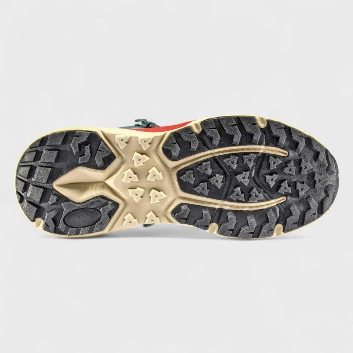 Кроссовка, которая выделяется тем, что является моделью с мембраной WATERPROOF, что гарантирует среднюю водостойкость. Верхняя часть из нейлона обеспечивает отличную воздухообменную способность, особенно важную для такого типа ботинок. Подошва из филоона позволяет обеспечить большую амортизацию и отзывчивость. Кроме того, она оснащена стабилизатором в области пятки. Эти качественные характеристики дополняются носком с двойным термоуплотнением, который защищает переднюю часть стопы.