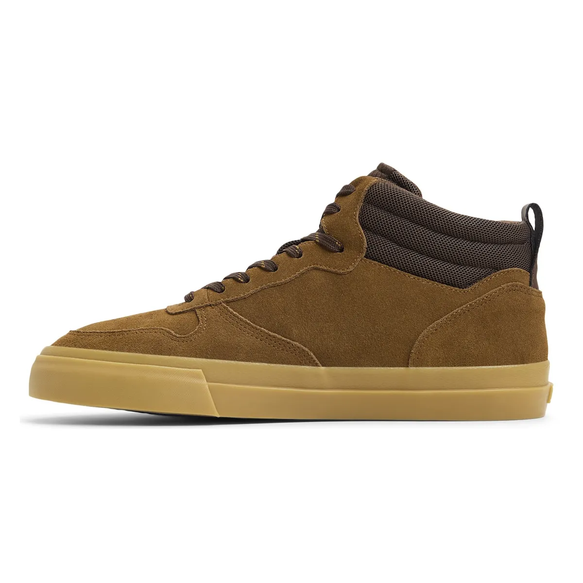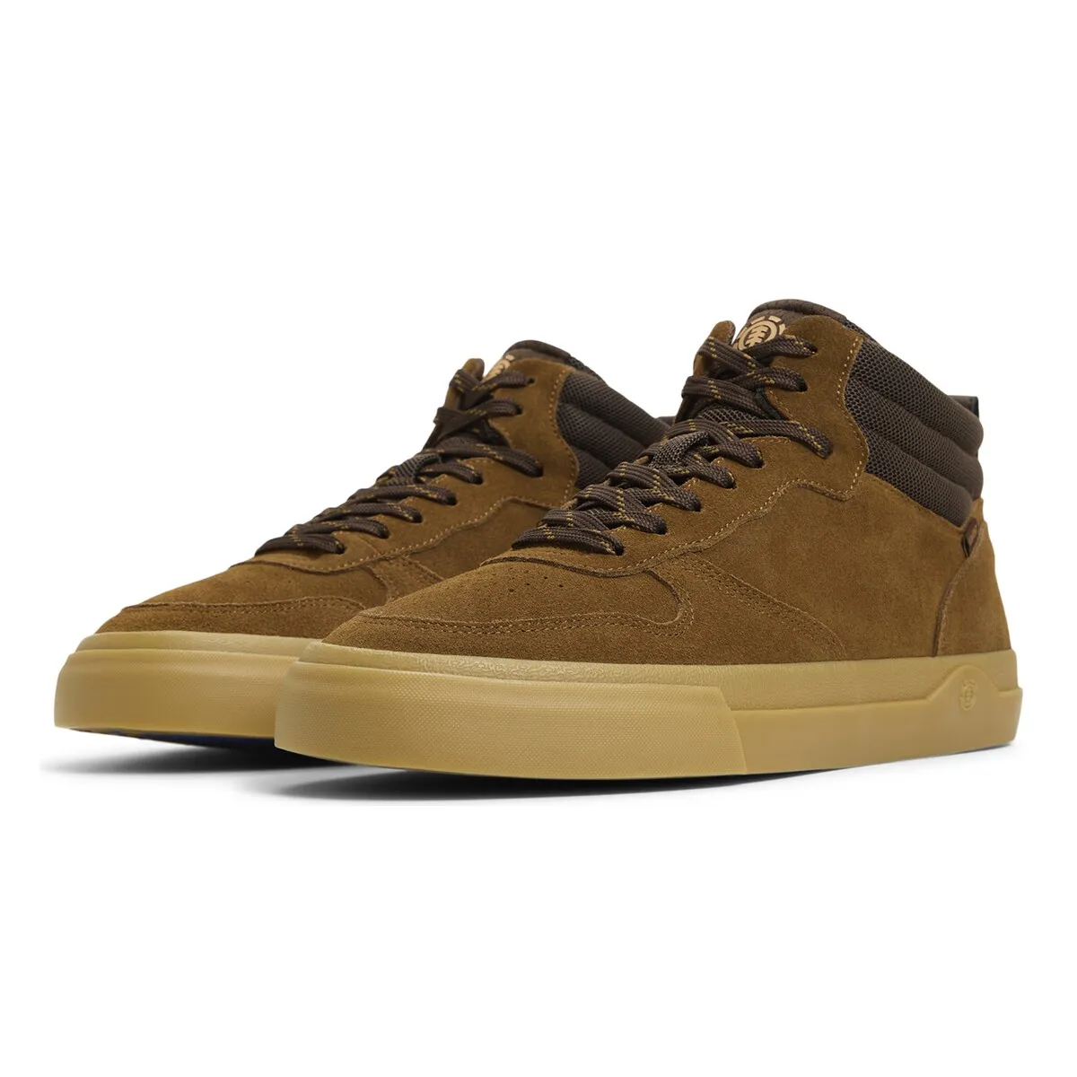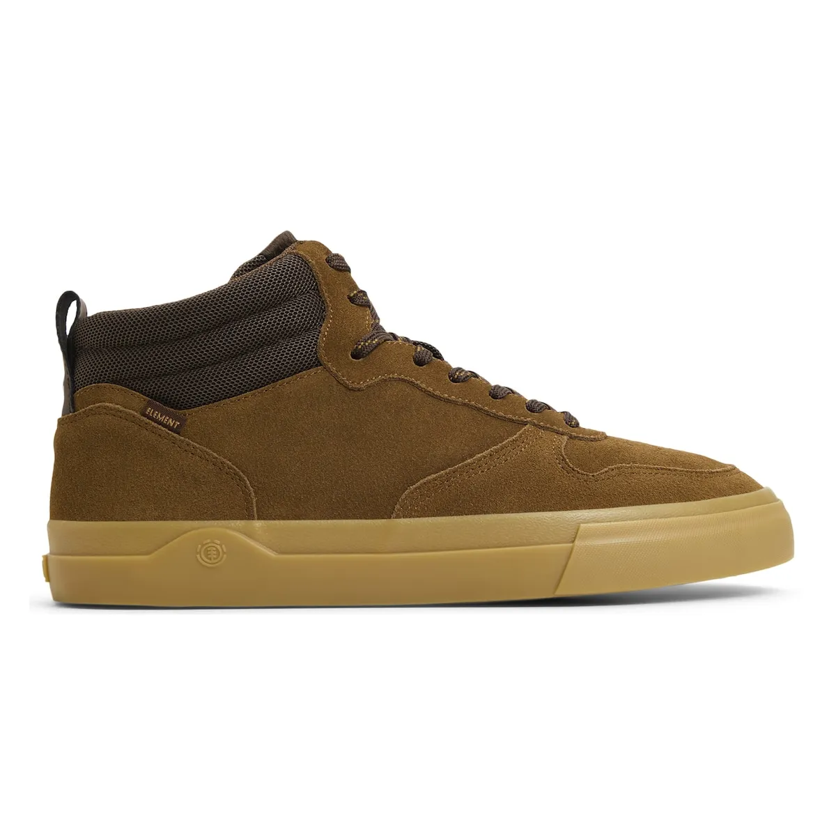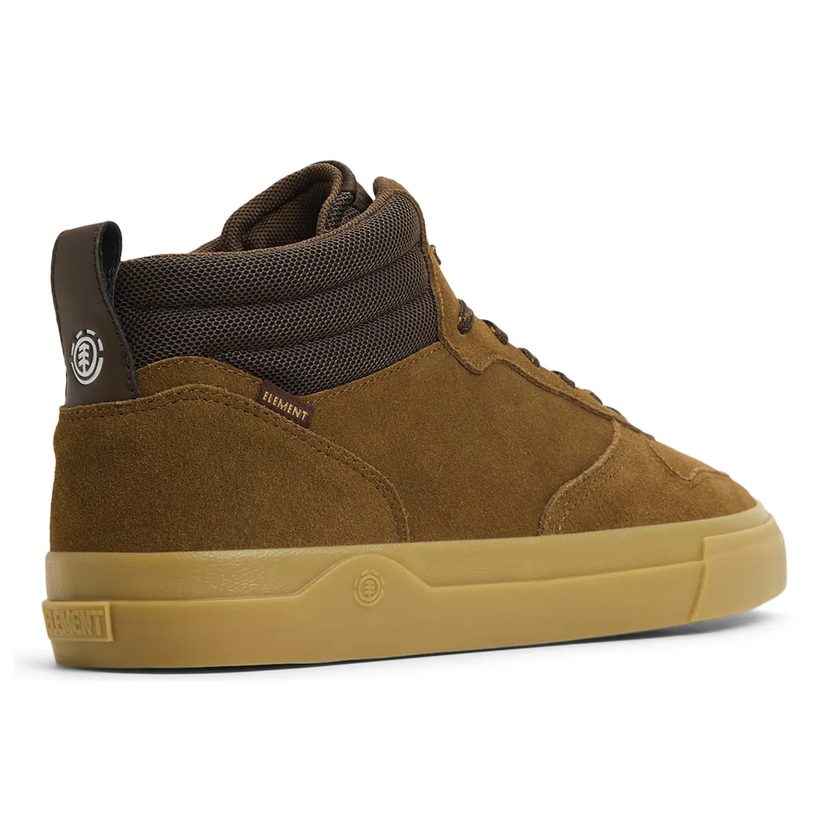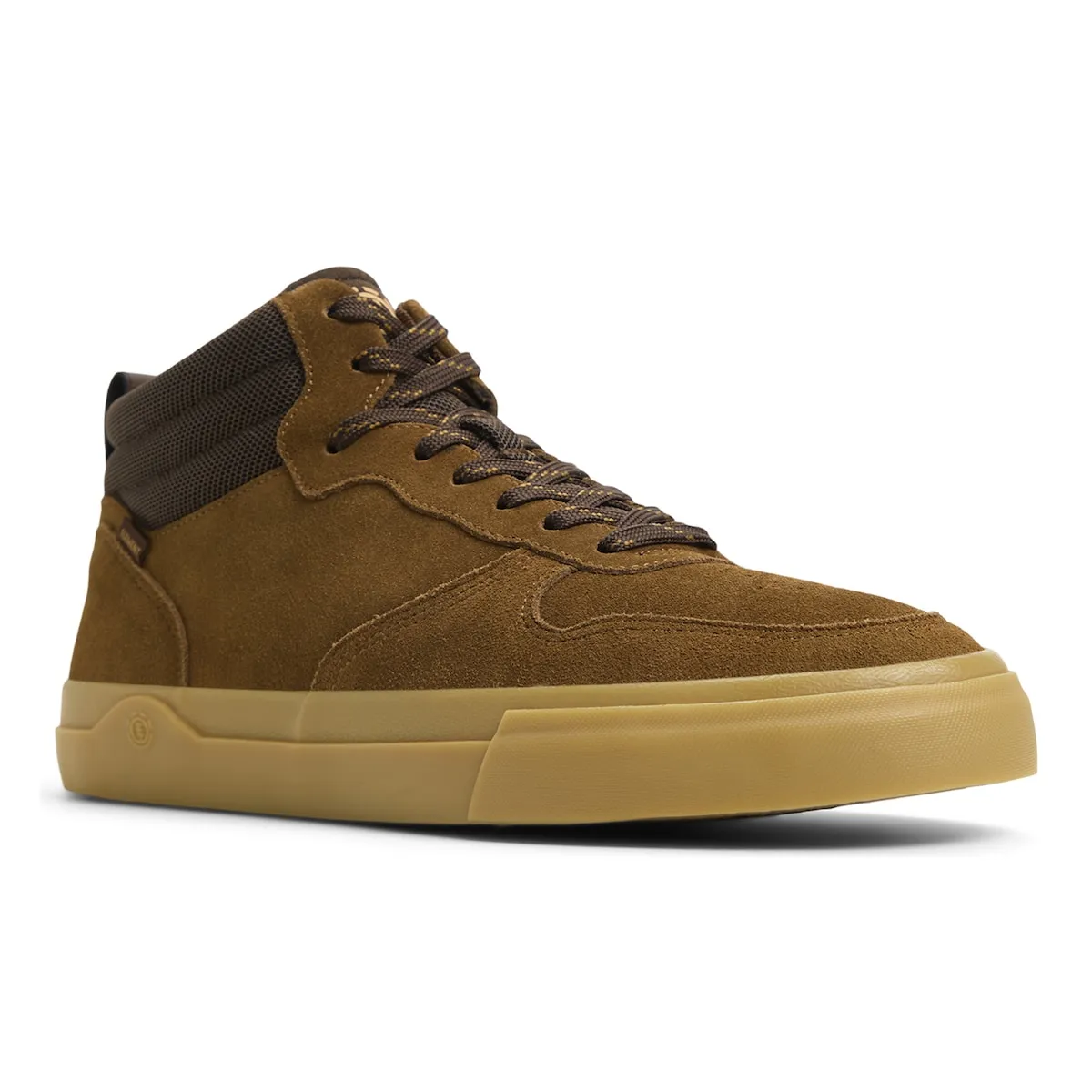 Мужские замшевые кроссовки средней высоты. Характеристики включают: модель с средней голенью Topaz C3 2.0, Ucut Eyestay, материал: голень и подкладка из полиэстеровой сетки с мягкой набивкой из переработанного материала, верх из замши, сертифицированной Leather Working Group, стелька Element Helium, легкая и гибкая конструкция Strobel и двойная подошва с 20% переработанной резины.