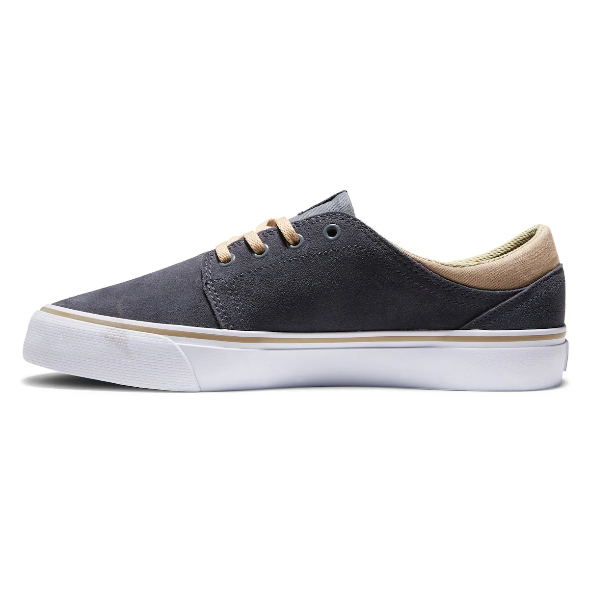 Мужские замшевые кроссовки. Особенности включают: верх из замши, внутренние части из сетчатой ткани, тисненый логотип HD, вулканизированная конструкция для лучшего ощущения доски и гибкости подошвы, прочная резиновая наружная подошва с хорошим сцеплением и фирменный рисунок подошвы DC Pill Pattern.
