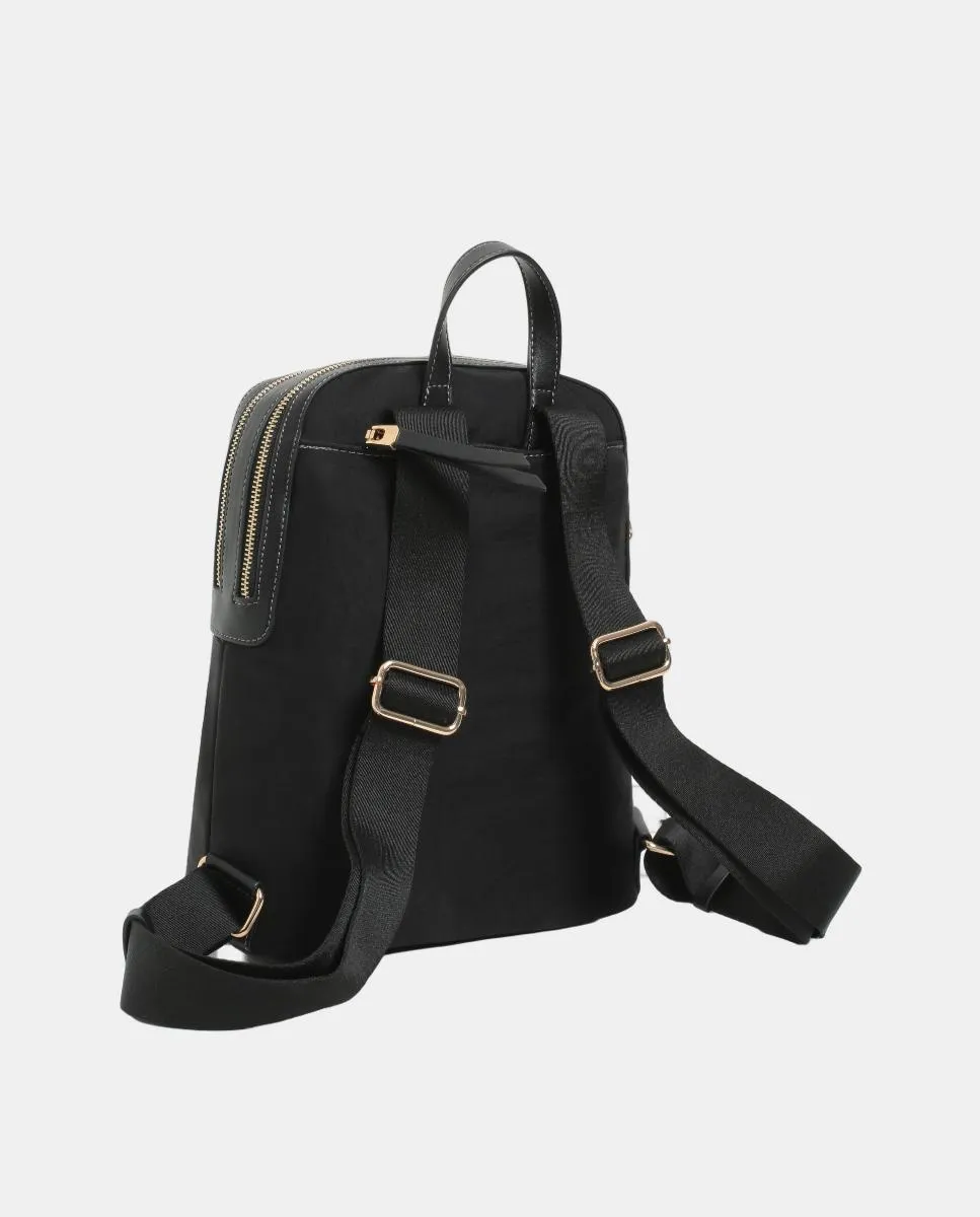 Рюкзак из нейлона черного цвета, с ручкой и регулируемыми плечевыми ремнями, на молнии, 2 внутренних кармана и 2 внешних кармана.
