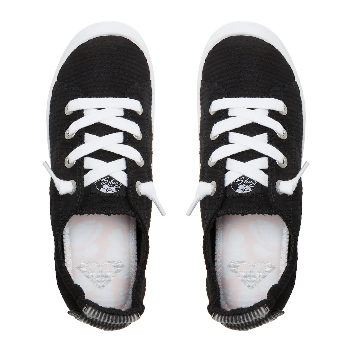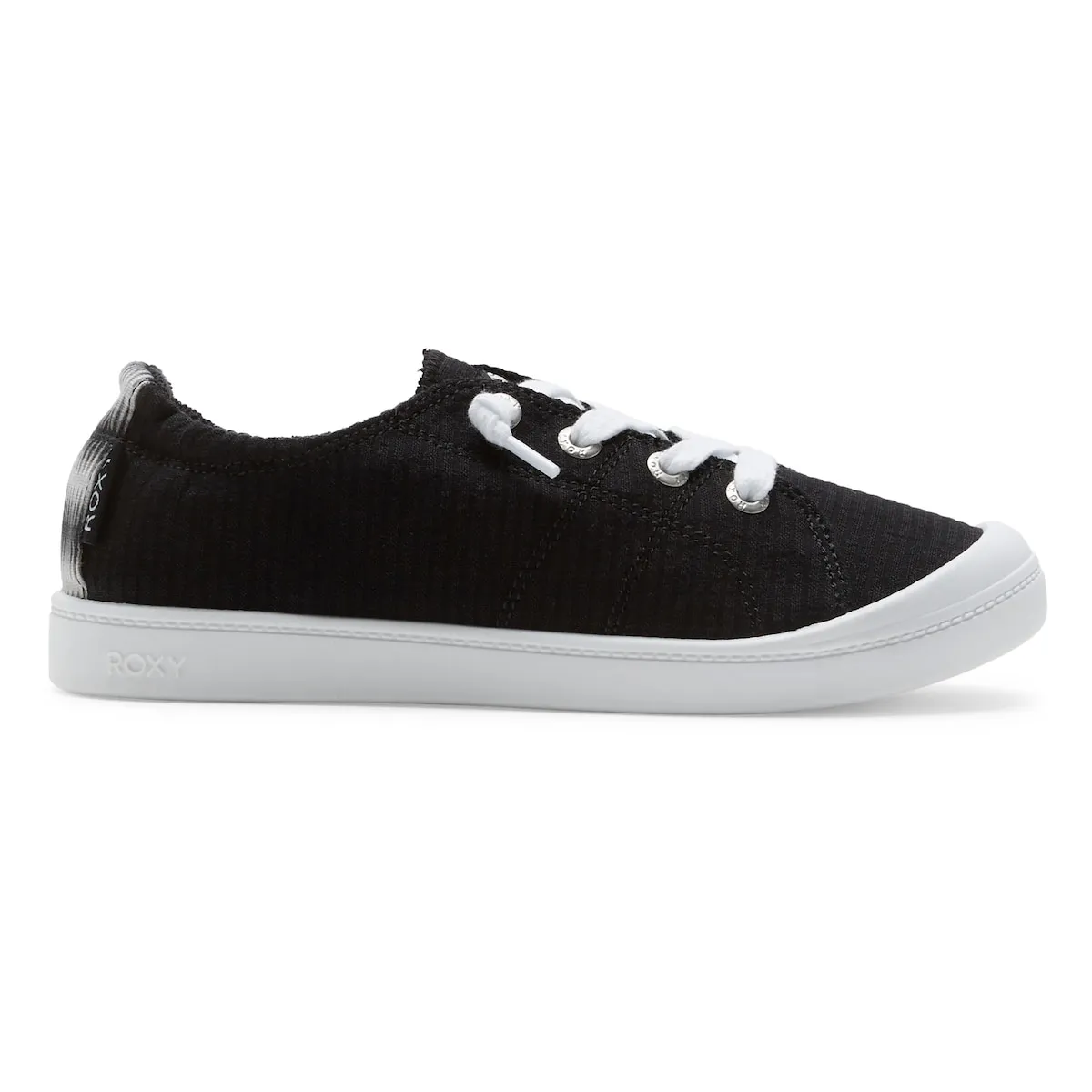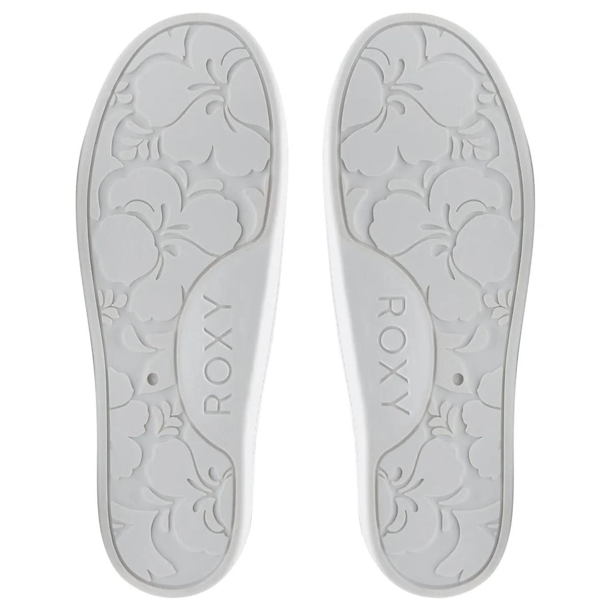 Женские кроссовки. Характеристики включают: Верх: текстиль с графическим принтом на основе водной краски [в зависимости от модели], Застежка: эластичный верх с дизайном slip-on и завязанными хлопковыми шнурками, Стелька: стелька с мягкой подкладкой из памяти формы и внутренней частью из переработанного холста с подкладкой из флиса REPREVE, Подошва: инжектированная гибкая подошва из TPR с 50% переработанного материала, с формованной дугой и классическими деталями Roxy.