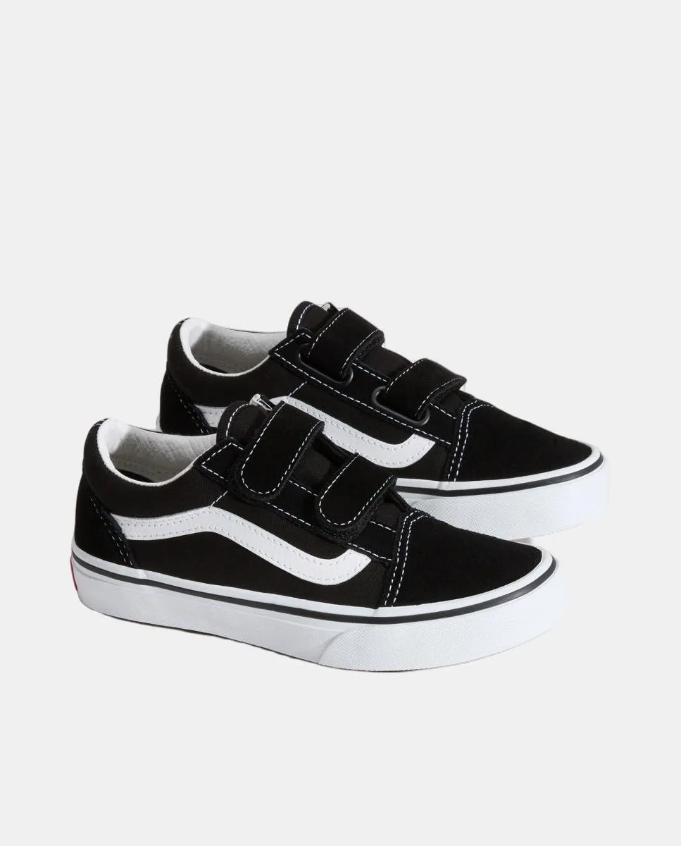 Детские кроссовки Old Skool V с застежкой-липучкой, обеспечивающей легкую и надежную посадку. Сохраняют классический дизайн с боковой полосой Sidestripe, комбинацией замши и ткани, а также резиновой подошвой вафельной структуры для комфорта на весь день. Включают мягкий воротник и усиленные носки.
