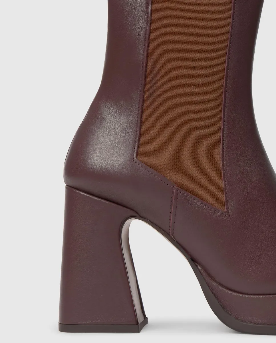 Ботильоны Bimba из наппы с эластичной застежкой, мягкой стелькой и геометрическим каблуком 10 см в тон.