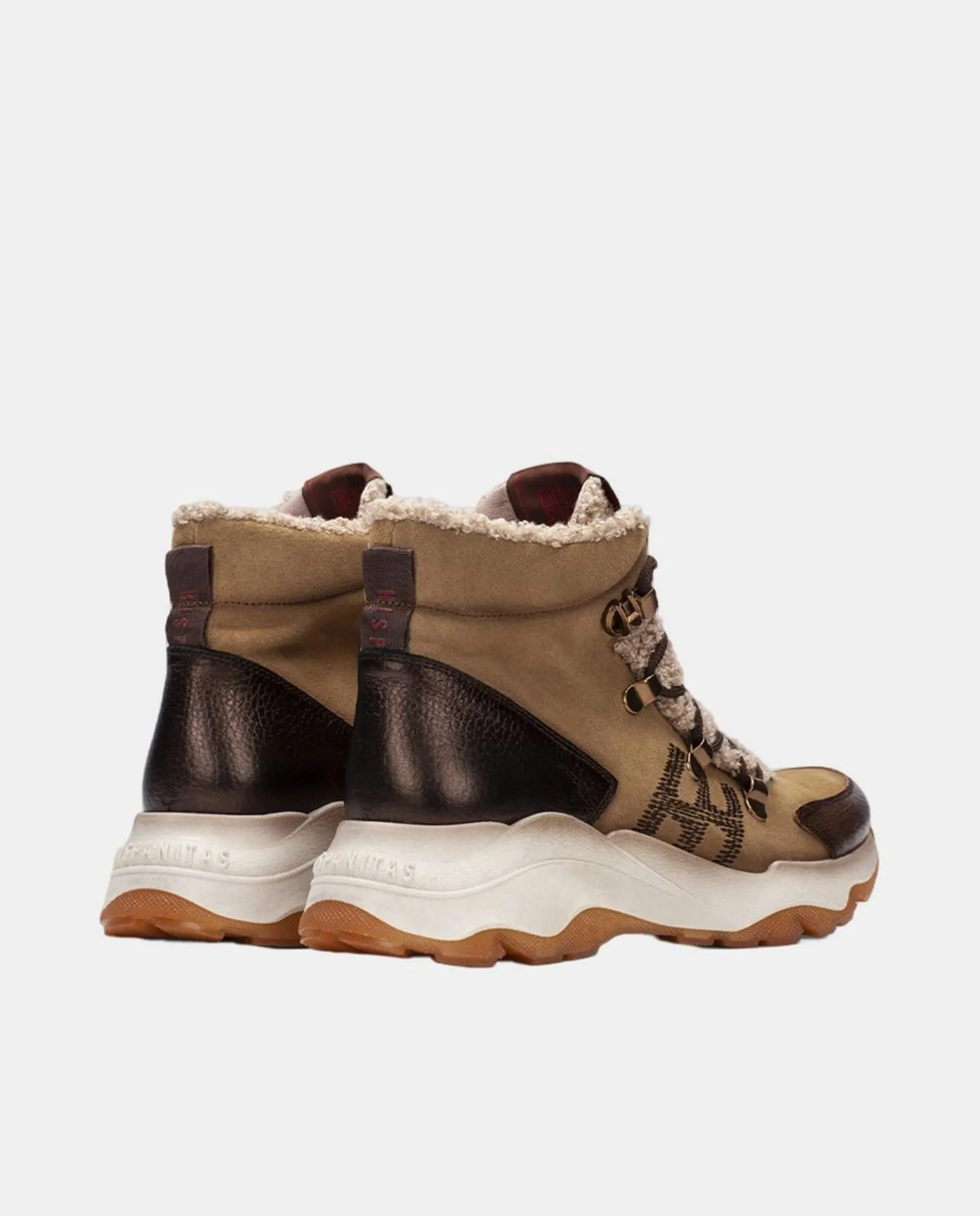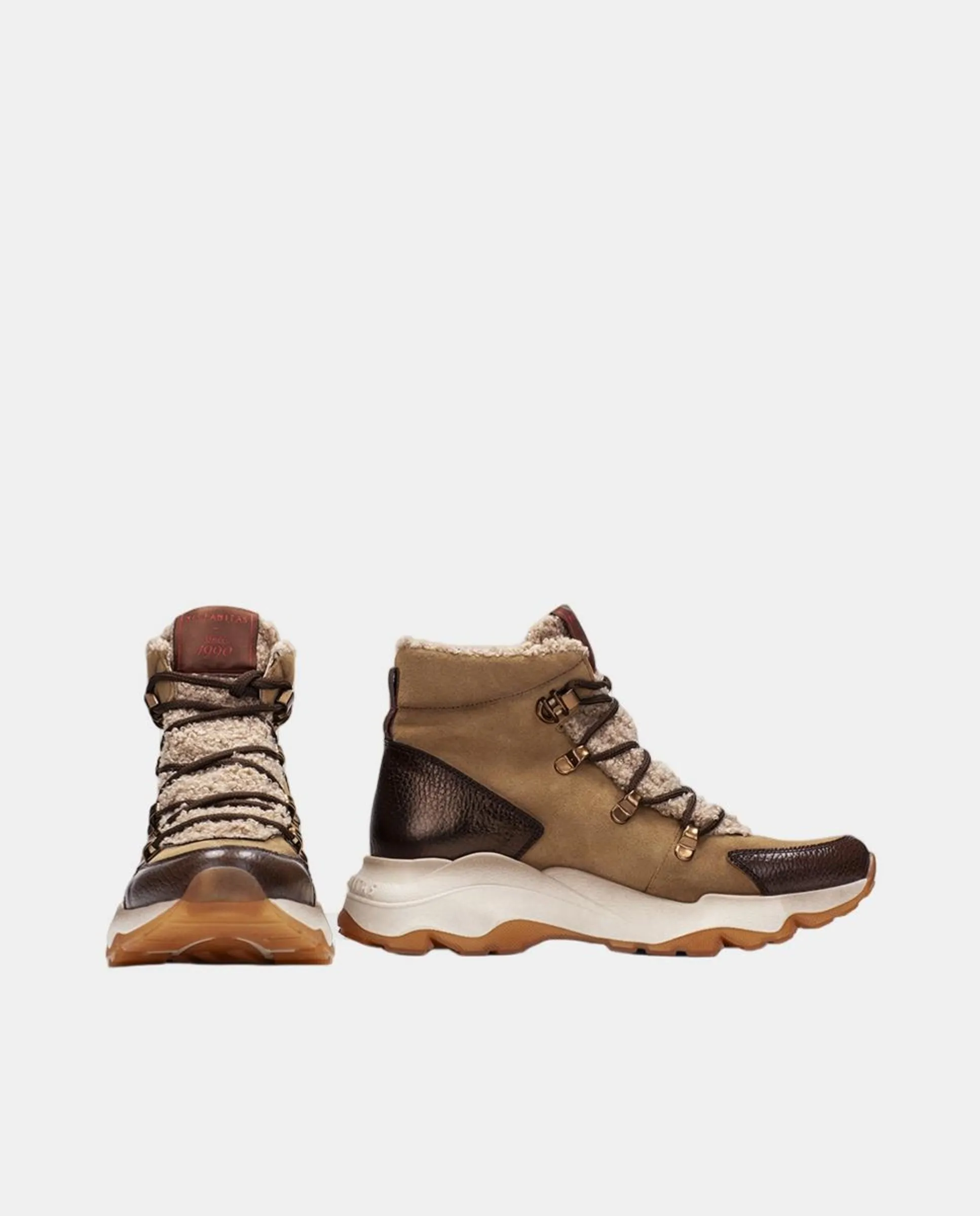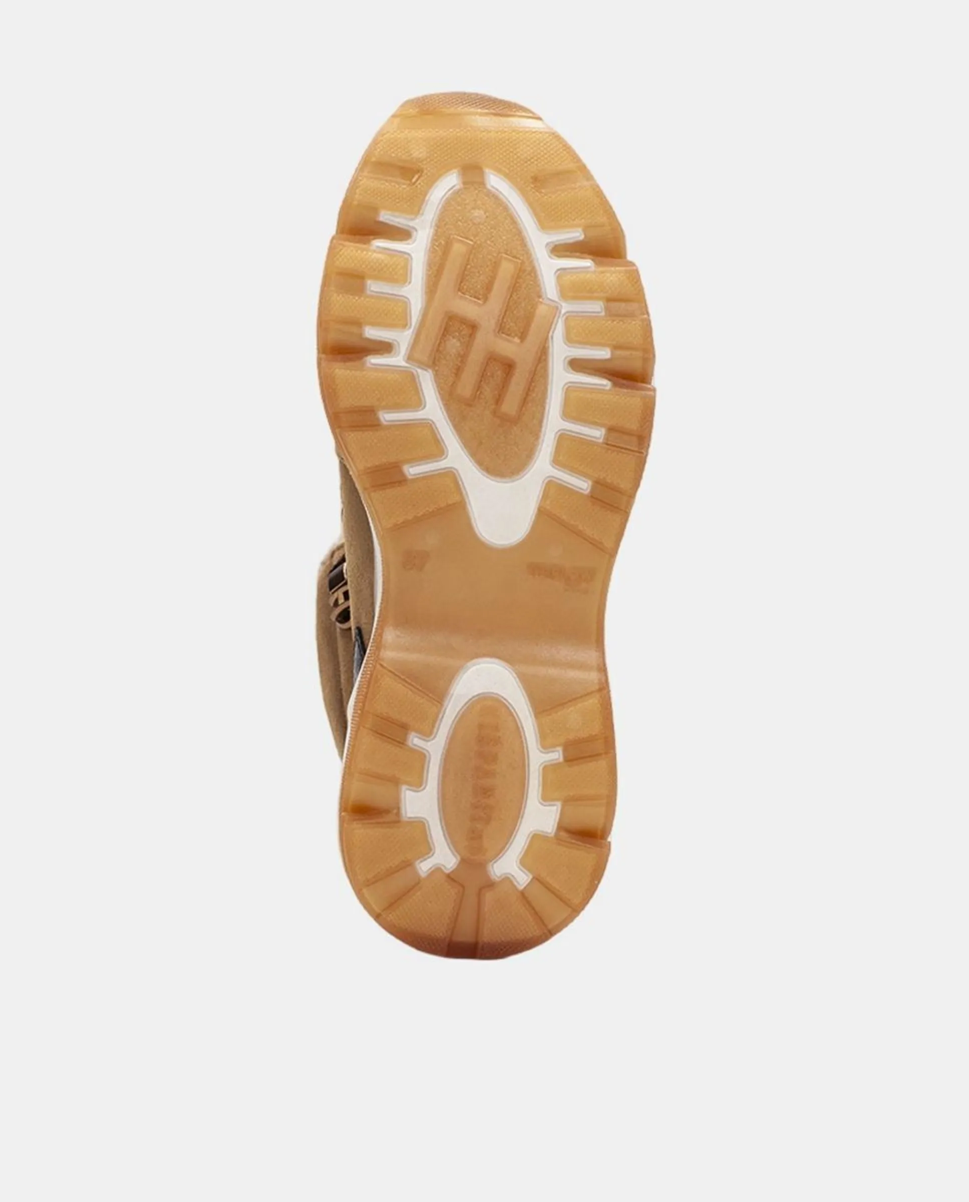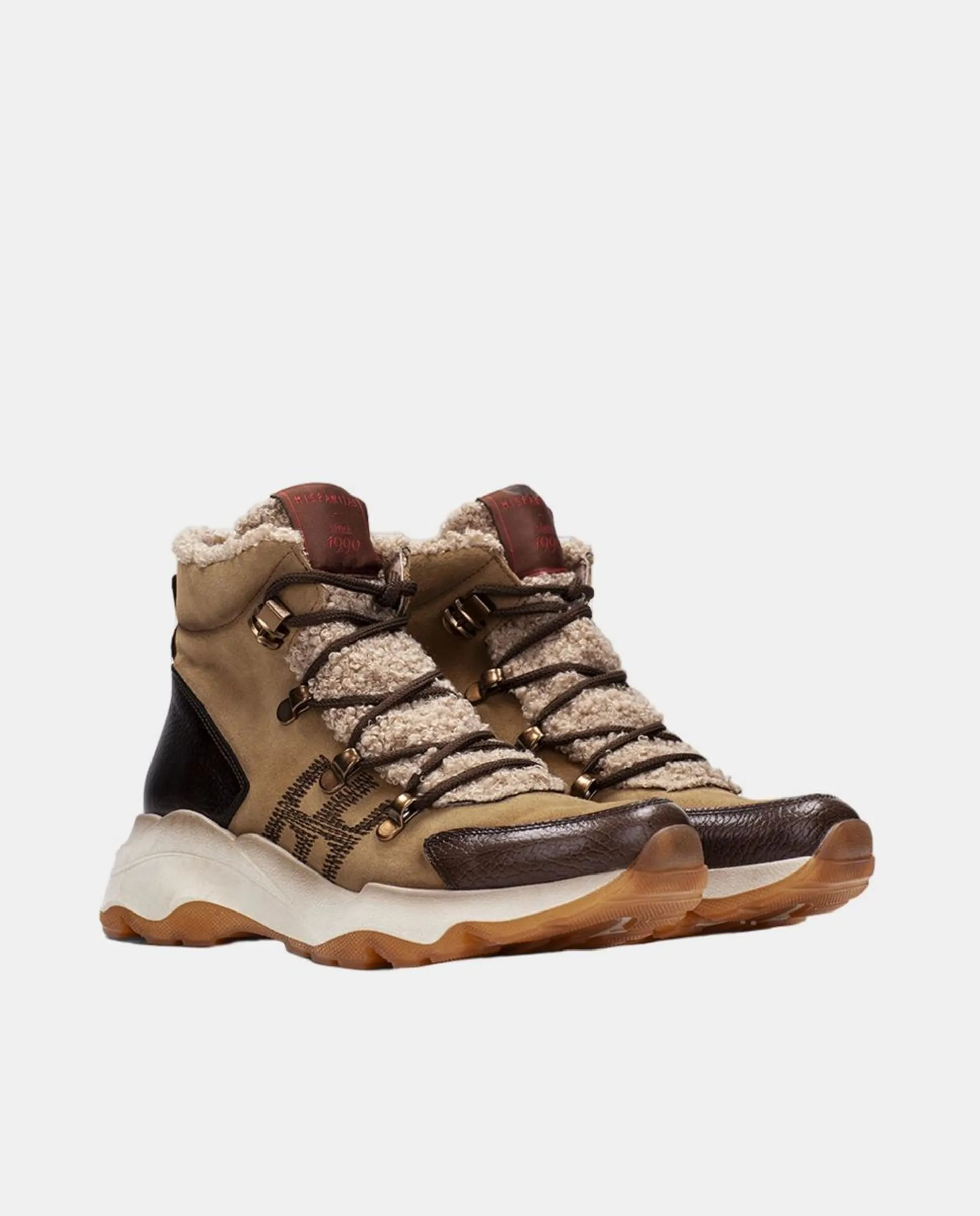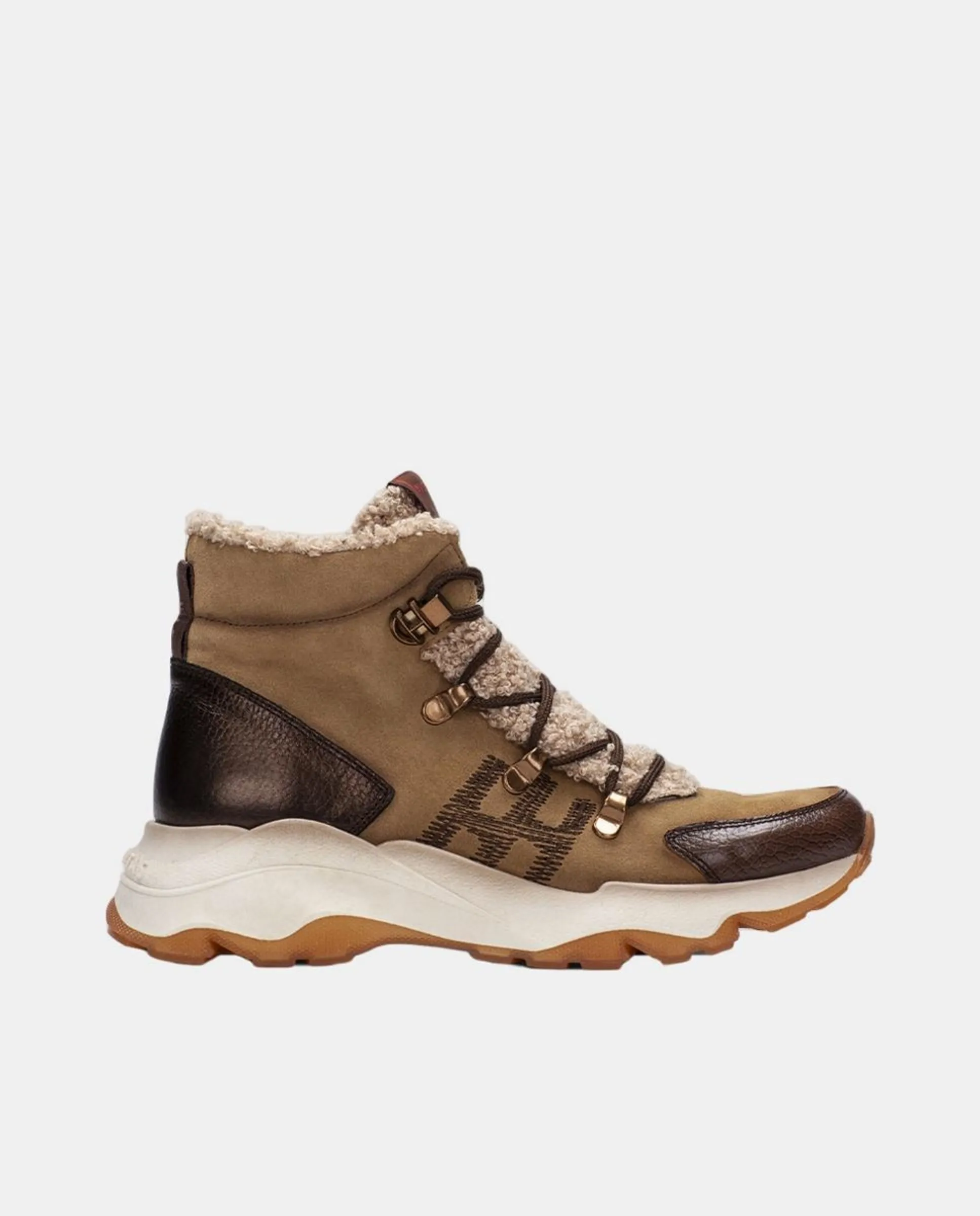 Дезинфицированный спортивный ботинок с шнуровкой и язычком из ткани с эффектом овчины не животного происхождения. Деталь с двойной буквой H сбоку. Подошва из термопластичной резины высотой 4 см. Изготовлен из кожи. Внутренняя подкладка не животного происхождения, 100% дышащая и терморегулирующая.
