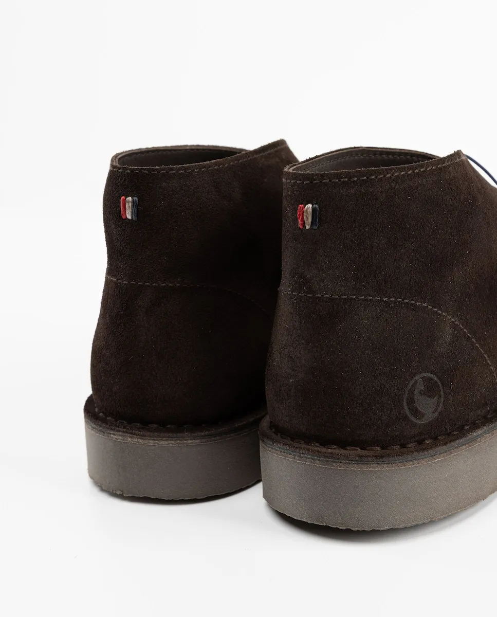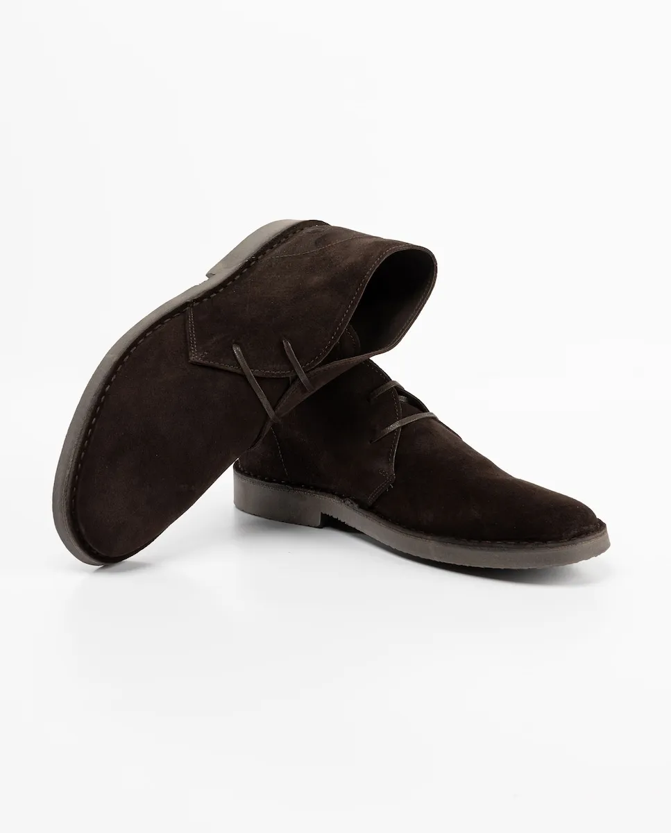 Ботинок, полностью изготовленный из испанской замши. Имеет удобную подошву из резины в стиле креп и три маленьких цветных шва на пятке. Застегивается на подходящие вощеные шнурки и оснащен очень удобной стелькой.