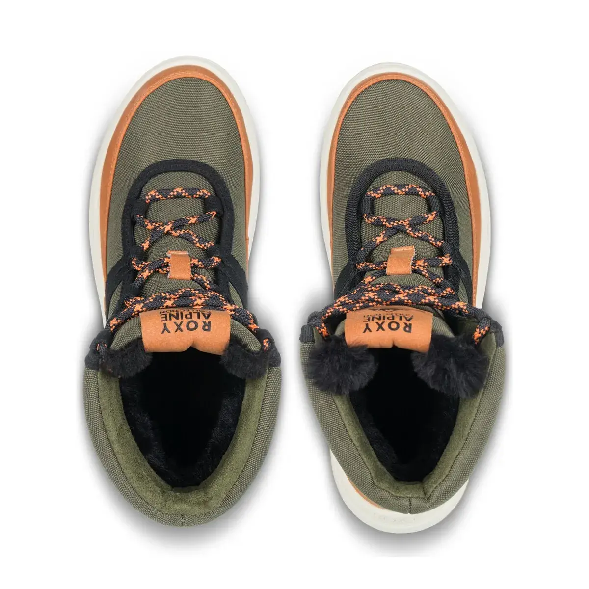 Женские ботинки. Характеристики включают: Климатический рейтинг: Roxy WarmFlight 3 с 200 г термоизоляции, климатический индекс до -40°C, Верх: искусственная кожа и холст с водоотталкивающей обработкой, Материалы обработаны Scotchgard, Детали верха: шнурки из ременной ленты, Усиленный язычок с шерпой, Застежка: шнурки в стиле хайкинг, Стелька: внутренняя часть из шерпы и стелька с этикеткой Roxy, Подошва: литая резиновая подошва с выемками Roxy в форме горы, Упаковка: коробка, Высота каблука: 40 мм.