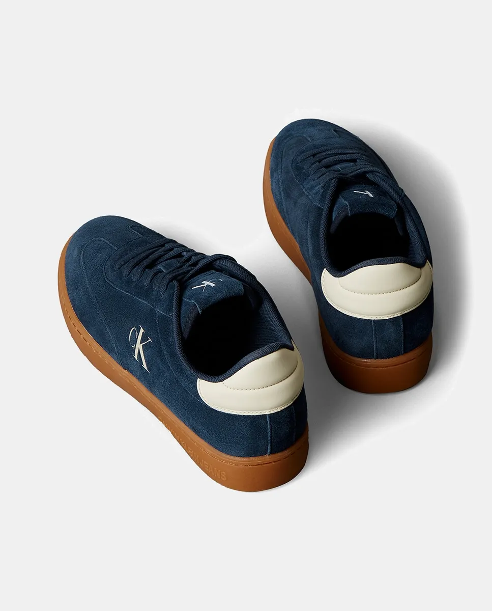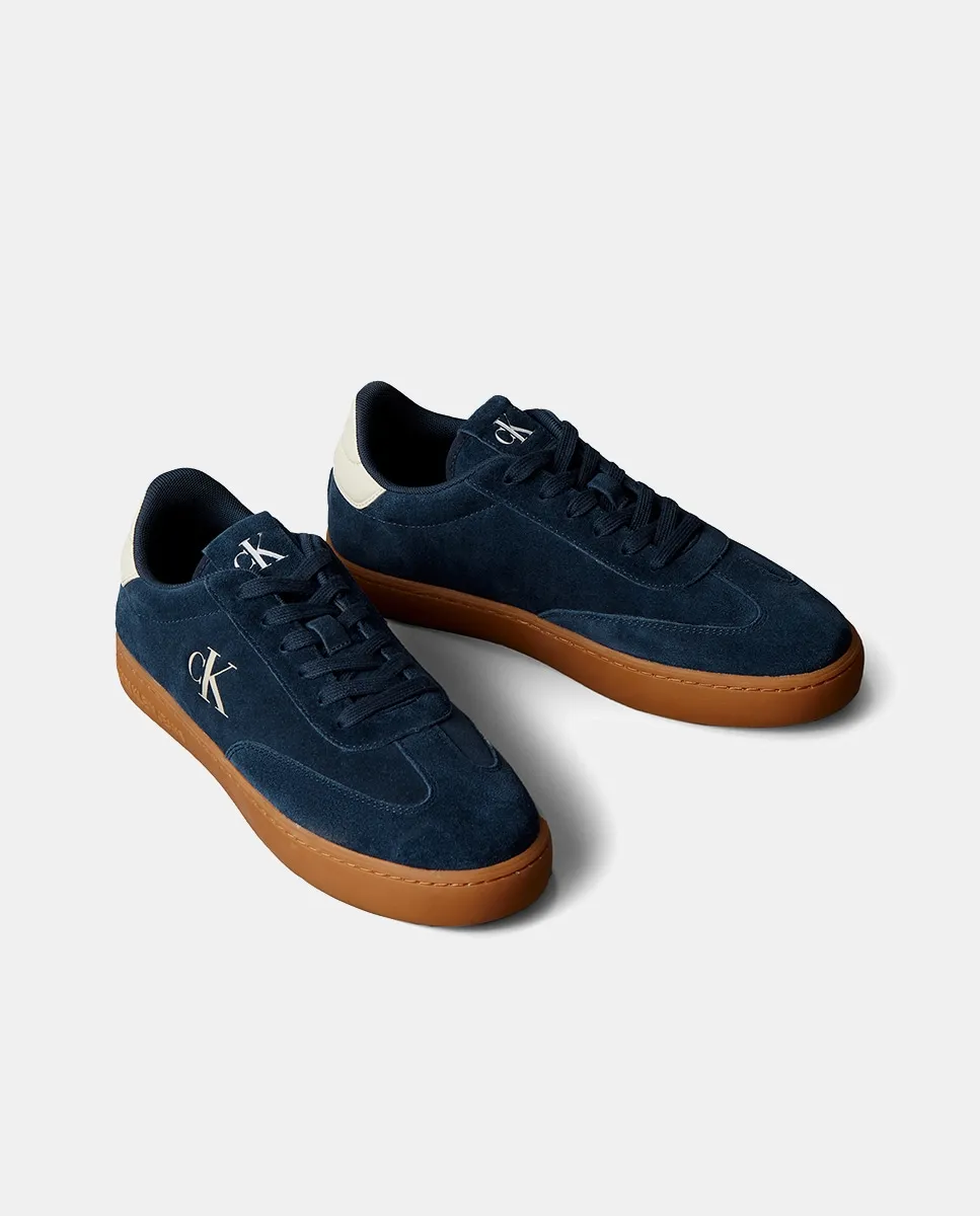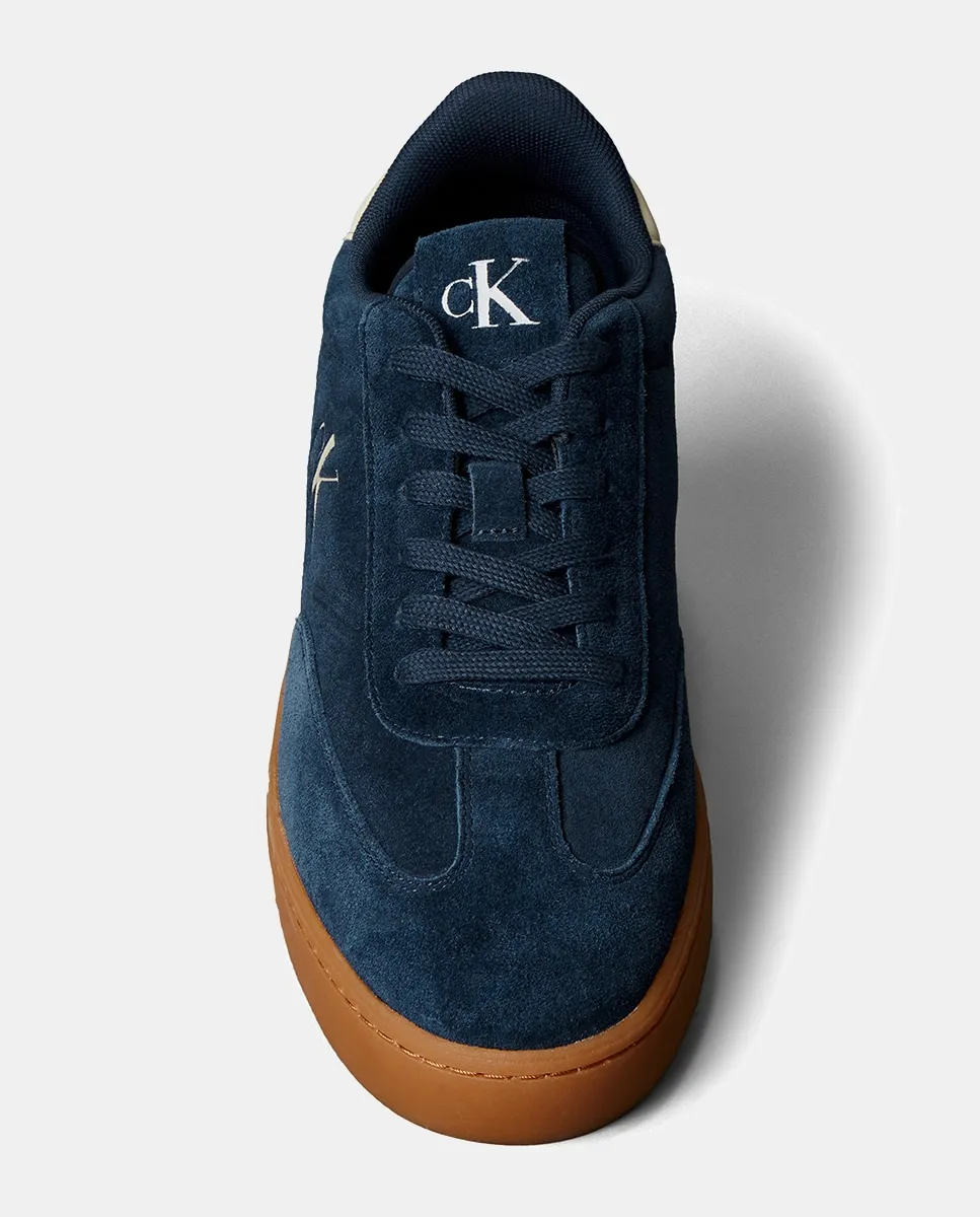 Низкие кроссовки в стиле кроссовок, изготовленные на 100% из замшевой кожи синего цвета с застежкой на шнурках, карамельной подошвой, боковым логотипом и задником белого цвета.