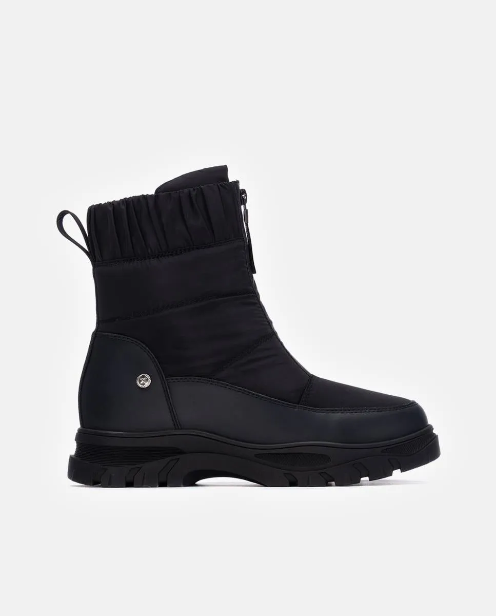 Женские ботинки марки Xti. Изготовлены из прочного текстильного материала, идеально подходят для холодных зимних дней. С передней молнией для удобной подгонки и надевания, эта модель прекрасно защищает от холода, не жертвуя комфортом. Дизайн рассчитан на снежные условия, с противоскользящей подошвой, обеспечивающей стабильность и безопасность на скользких поверхностях. Кроме того, их прочная и функциональная конструкция делает эту обувь идеальной для того, чтобы поддерживать ноги теплыми и сухими в зимний сезон. Незаменимые ботинки для тех, кто ищет комфорт и защиту со стилем. Съемная стелька. Эта модель получила сертификат веганской продукции от всемирной организации PETA (Организация по защите прав животных).