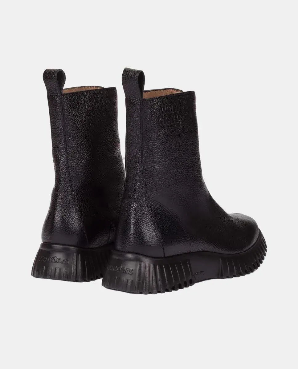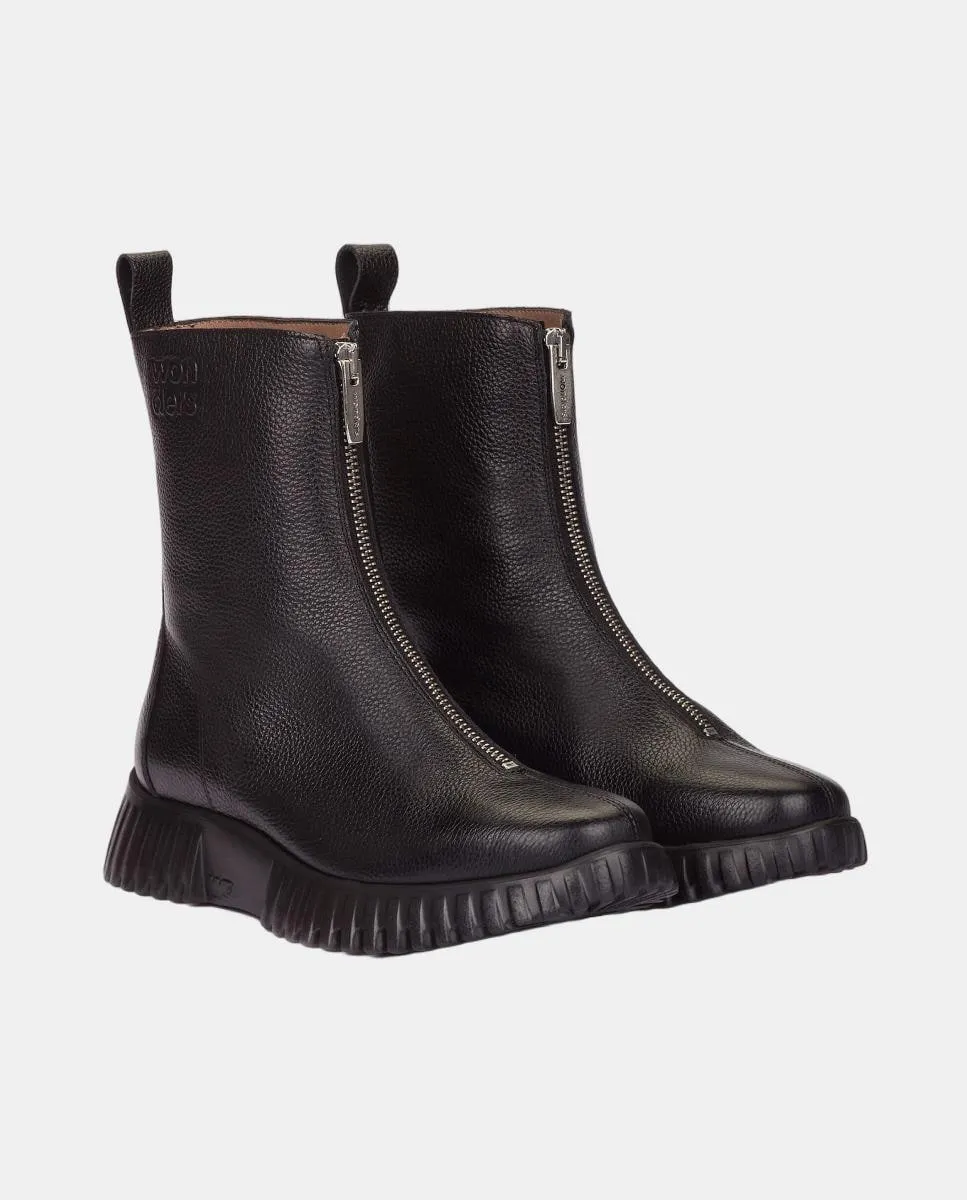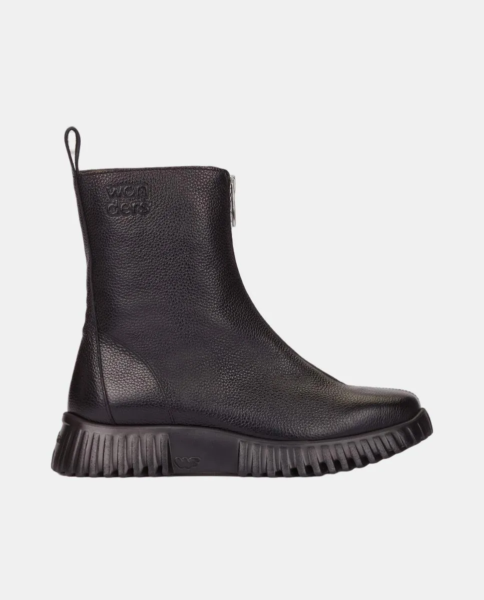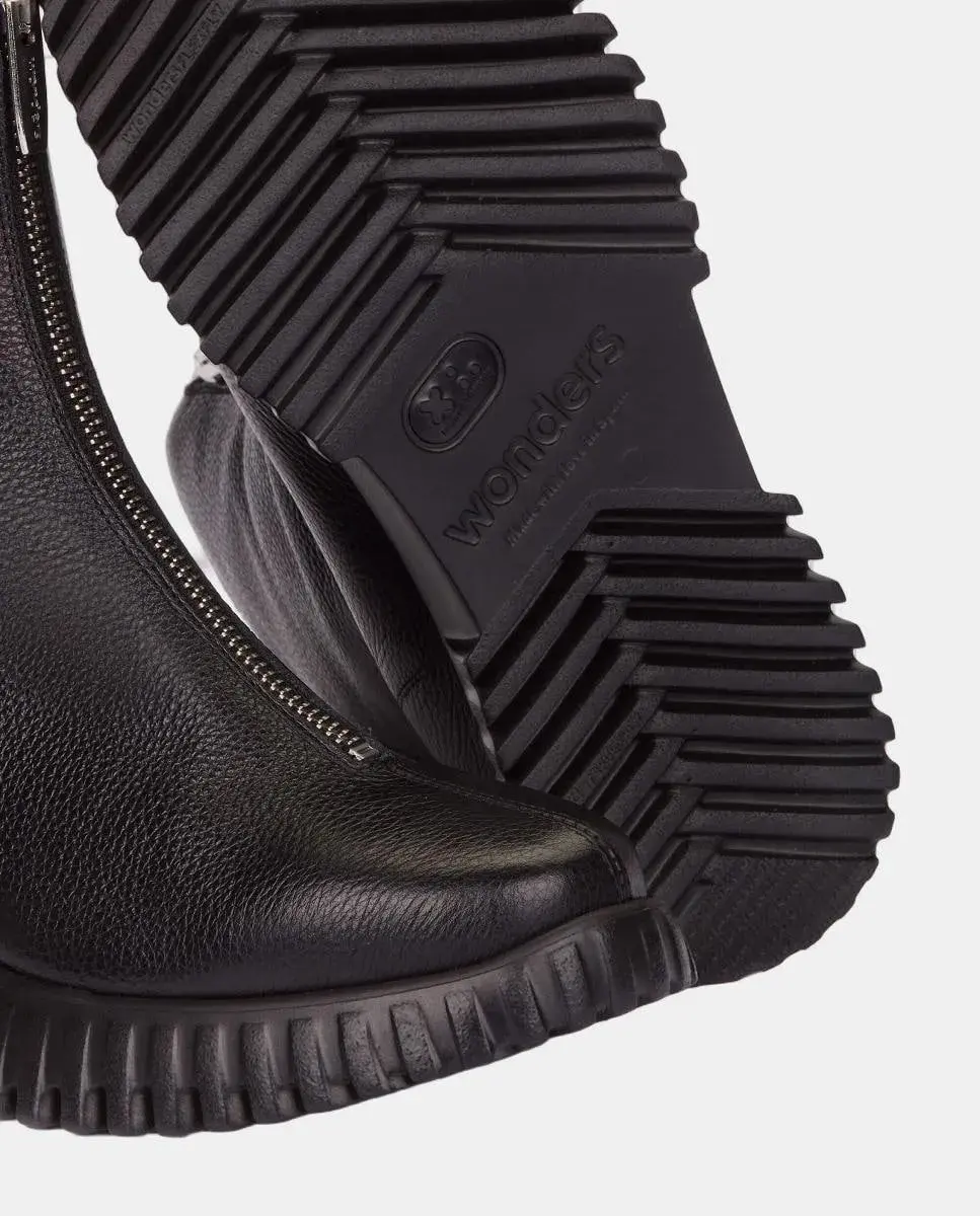 Плоские ботинки Wonders из черной кожи. Современная и универсальная модель с деталью центральной металлической молнии. С квадратным носком, тисненым логотипом и задней петлей для лучшего облегания. Подошва, разработанная с технологией WondersFly, обеспечивает непревзойденную легкость и дополнительный комфорт. Кроме того, съемная внутренняя стелька MemoryGel идеально повторяет форму стопы.