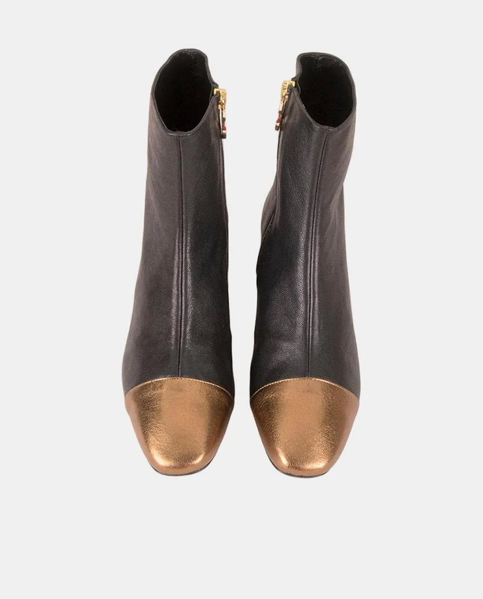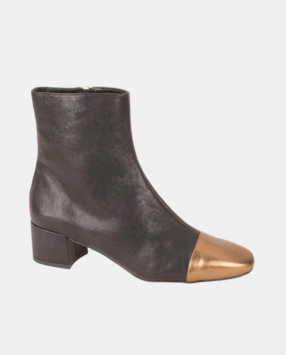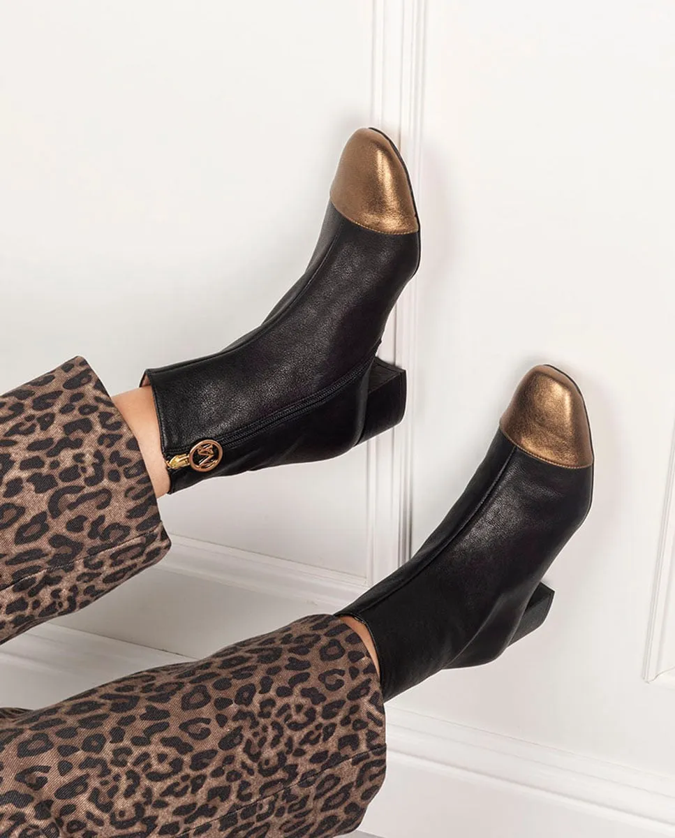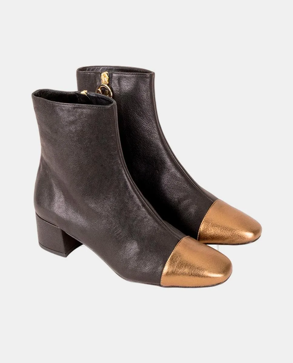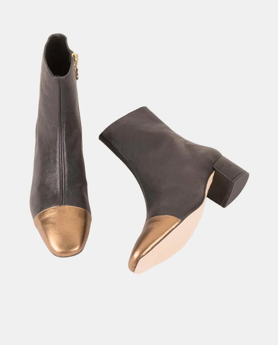Женские ботильоны из кожи с квадратным носком и обтянутым каблуком высотой 4 см.