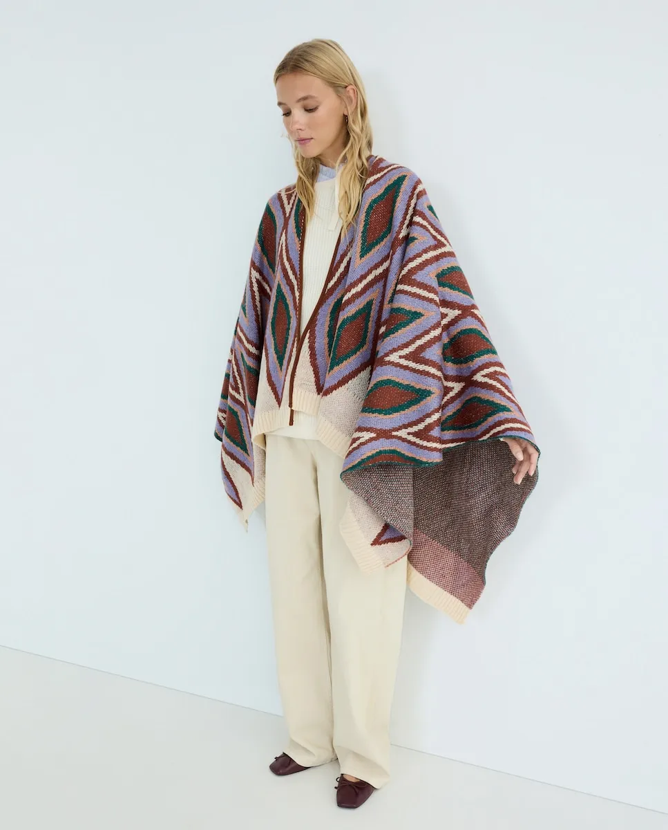 Пальто жаккард с ромбами Jo & Mr. Joe, экрю