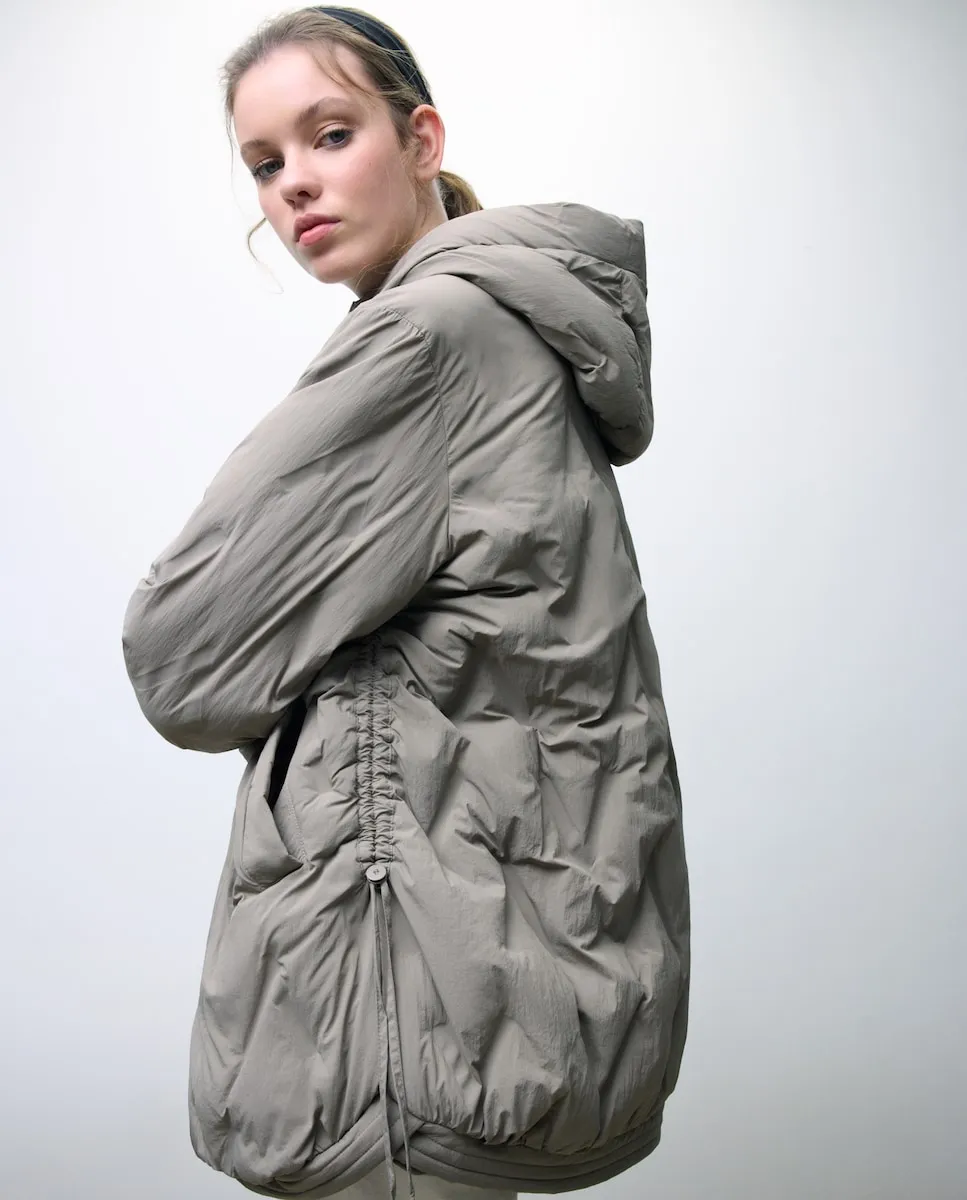 Пуховик с капюшоном.