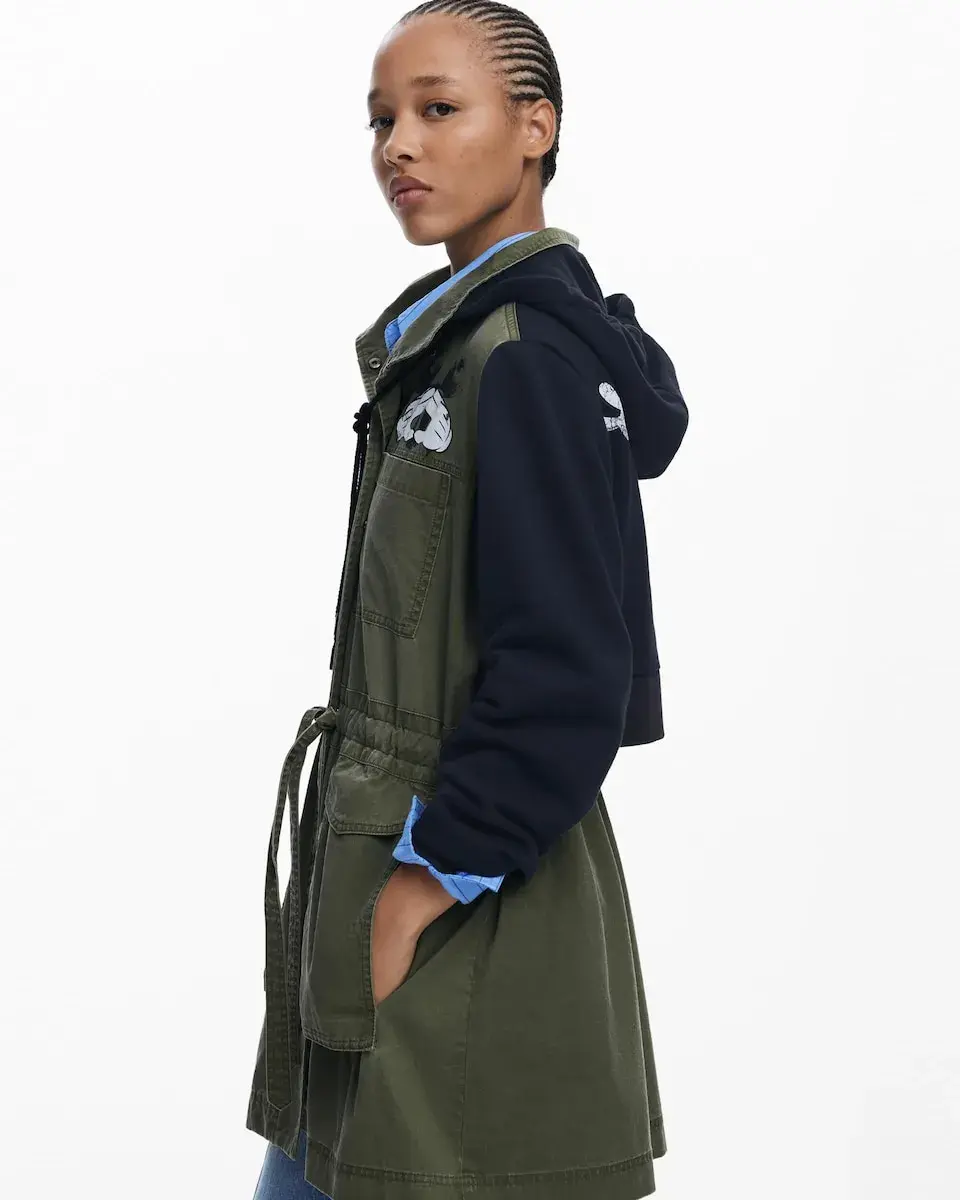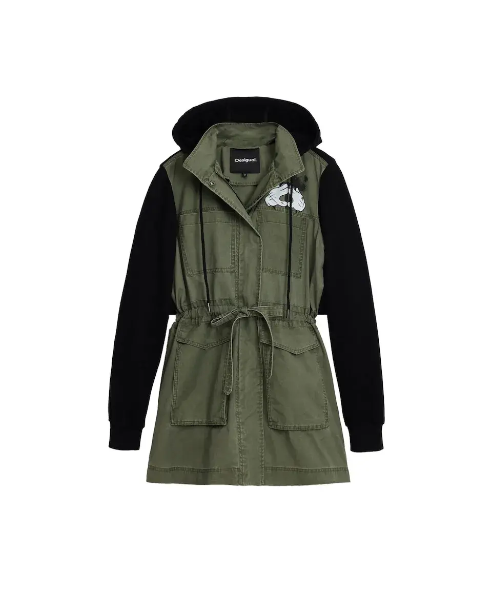 Мидидлина куртка парка из комбинированных тканей с принтом Mickey Mouse и регулируемым шнурком на талии. Цвет: однотонный. Крой: обычный. Рукав: длинный. Передние карманы. Застежка: на пуговицы. Комбинация тканей. Лицензия: Disney. Покупая хлопковые изделия Desigual, вы поддерживаете наши инвестиции в Better Cotton. Этот продукт производится по системе балансировки масс и может не содержать Better Cotton. bettercotton.org/massbalance.