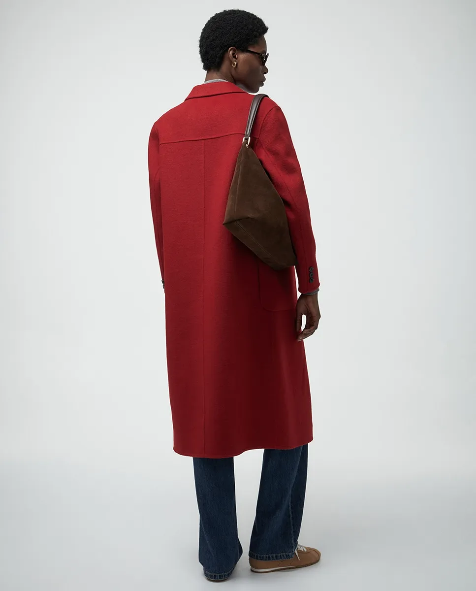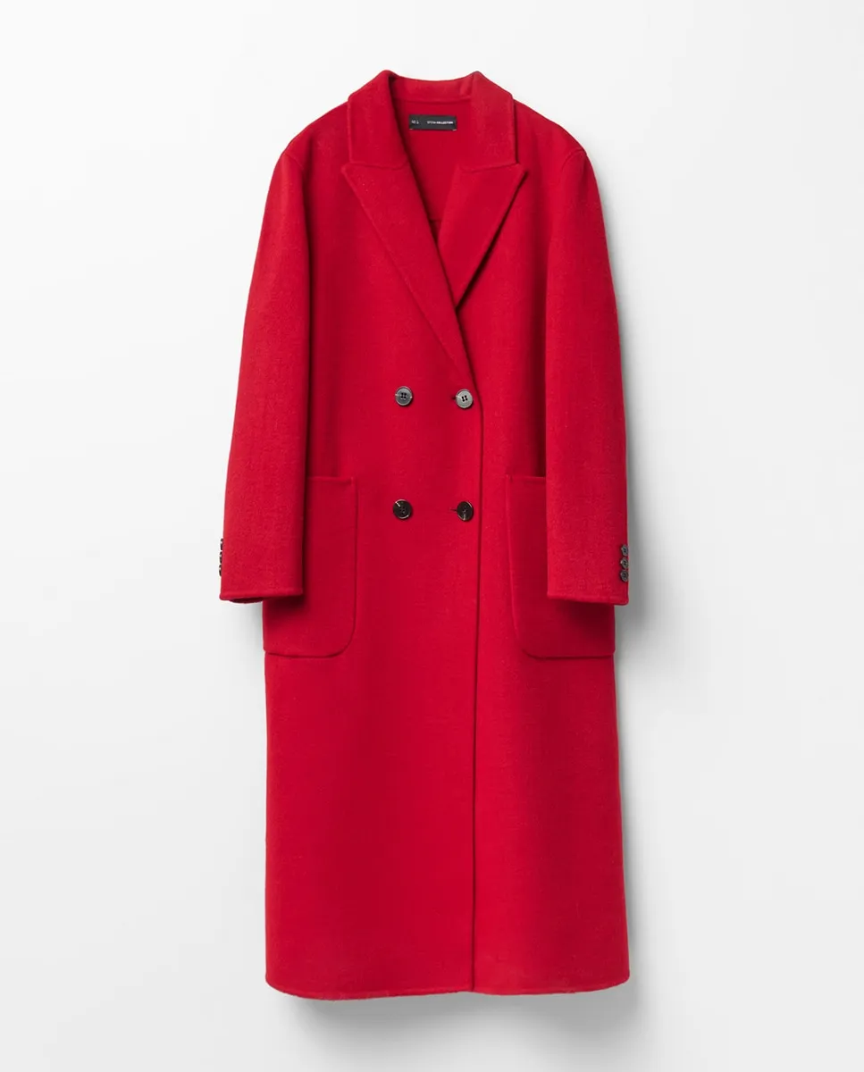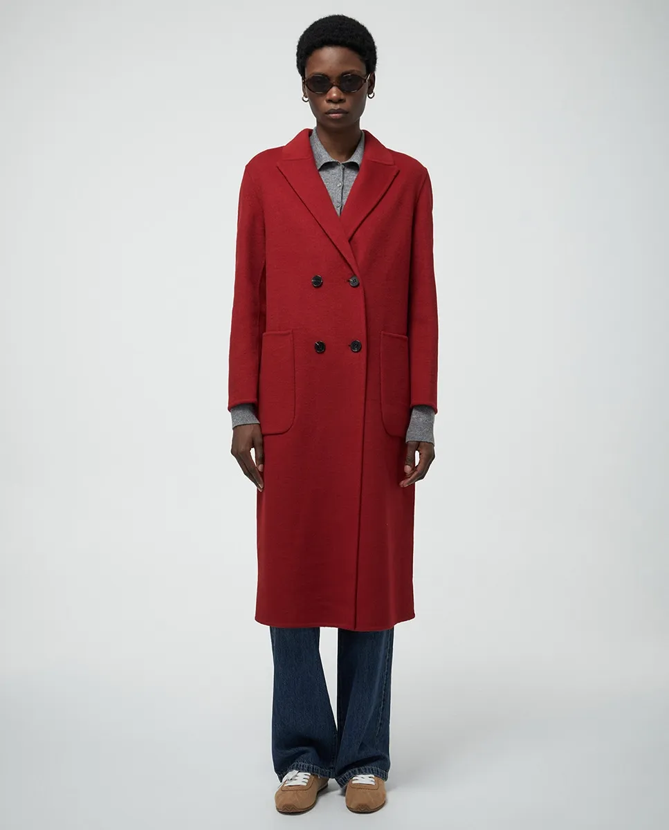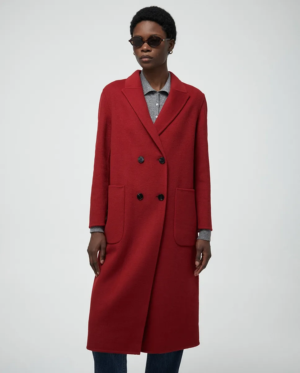 Миди-пальто с отложным воротником и карманами. Застежка на двойные пуговицы