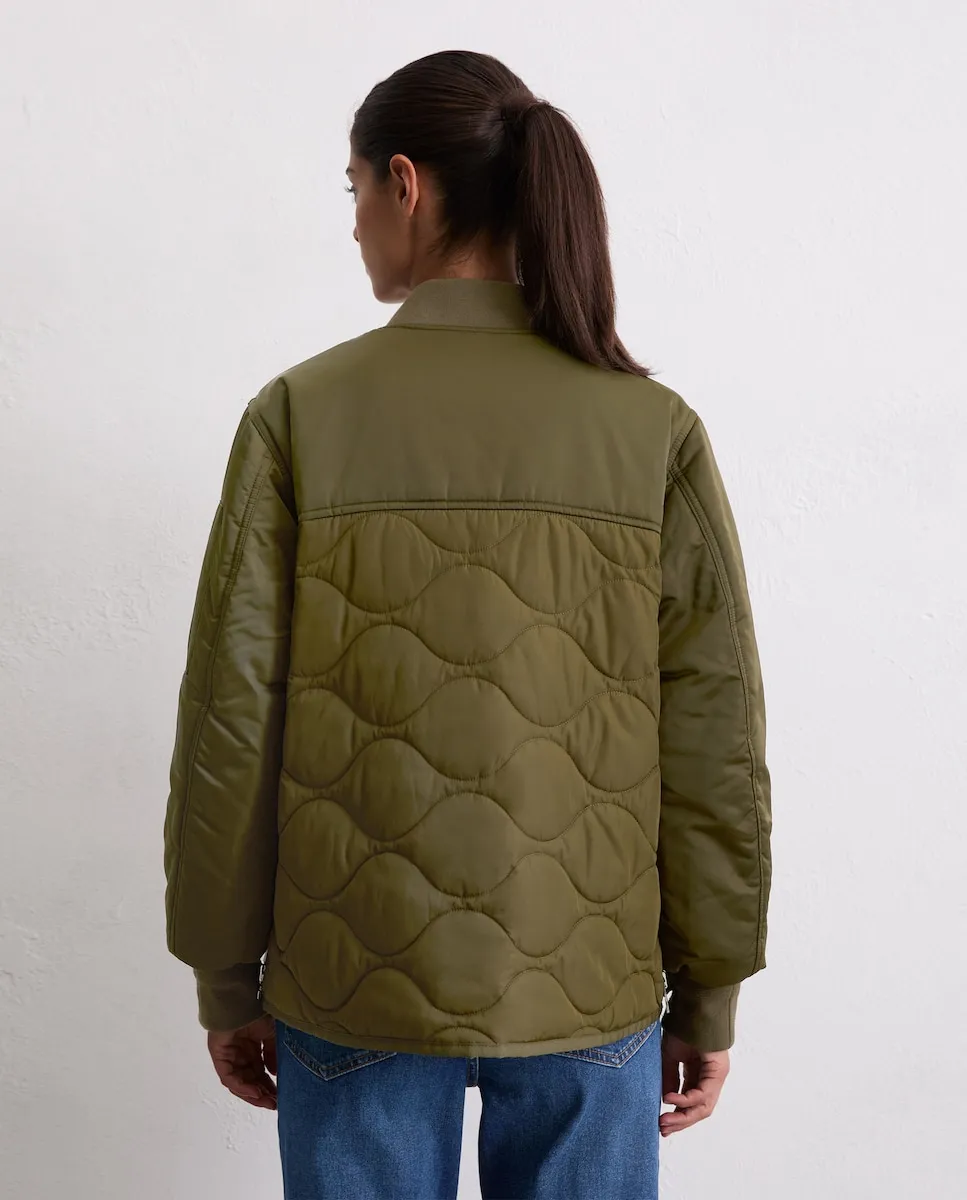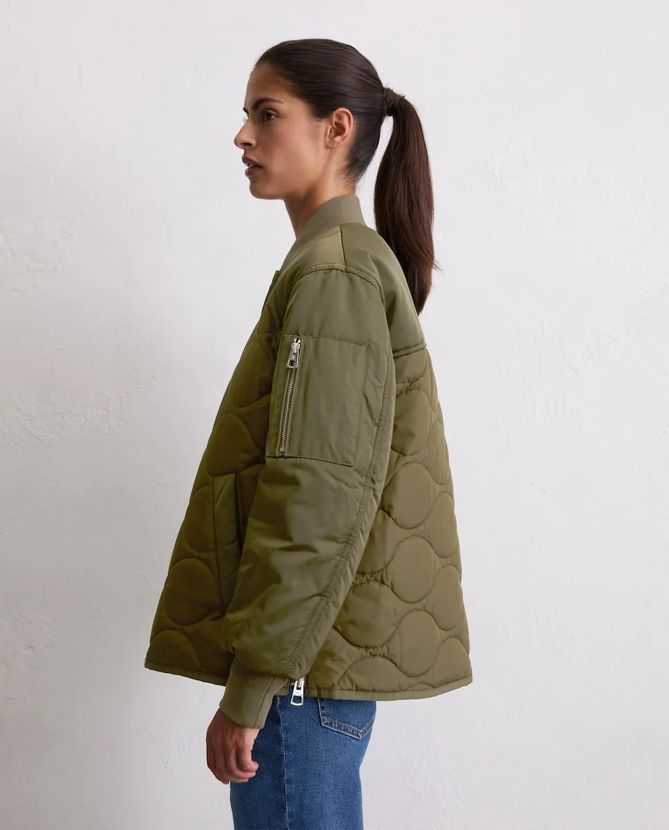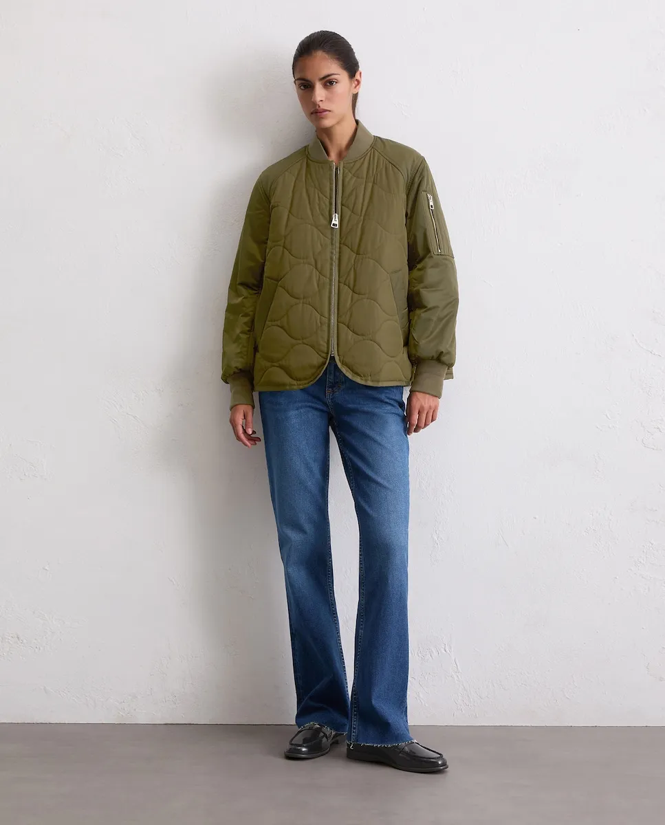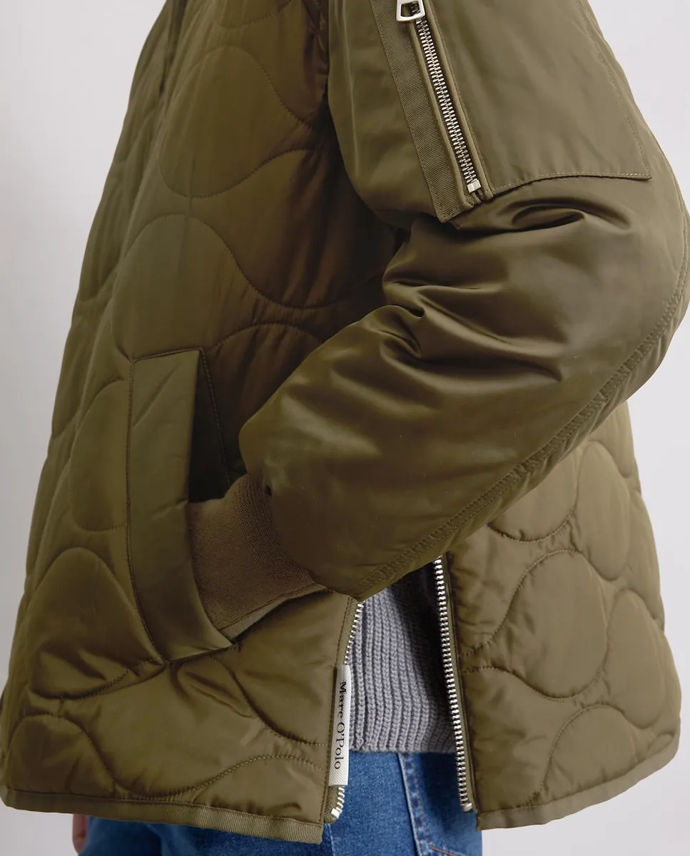 Непринужденный гибрид современных и технических материалов с матовой и блестящей поверхностью, гладкими и мягкими текстурами и ультрасовременными дизайнерскими элементами. С гарантированным теплом и ноткой стиля: накидка-пальто сверхлегкая, слегка стеганая и водоотталкивающая. У нее свободный покрой чуть короче обычного, и она оснащена характерными деталями: эластичный вязаный воротник, эластичные манжеты, накладной карман с молнией на реглан-рукаве, прочная металлическая передняя молния, два практичных кармана с кантом и непринужденный закругленный подол. Боковые швы, которые можно открыть с помощью молнии, являются особенной особенностью.