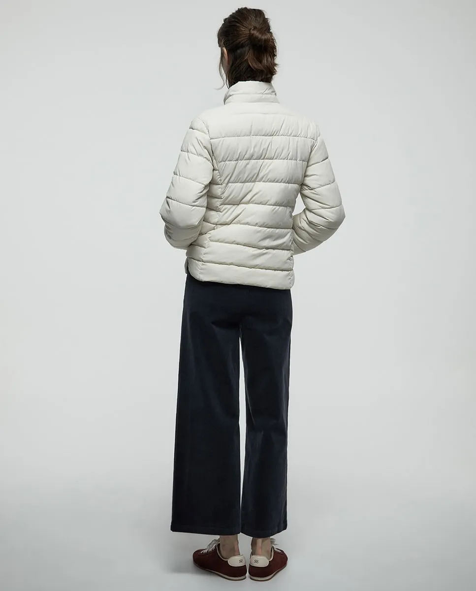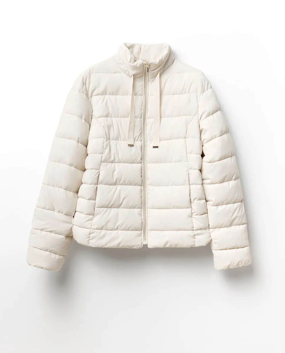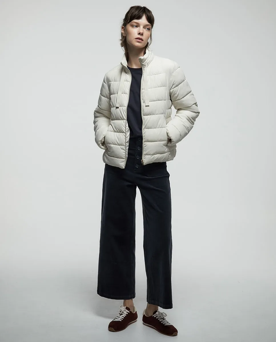 Стеганая приталенная парка. Передние карманы и застежка на молнию