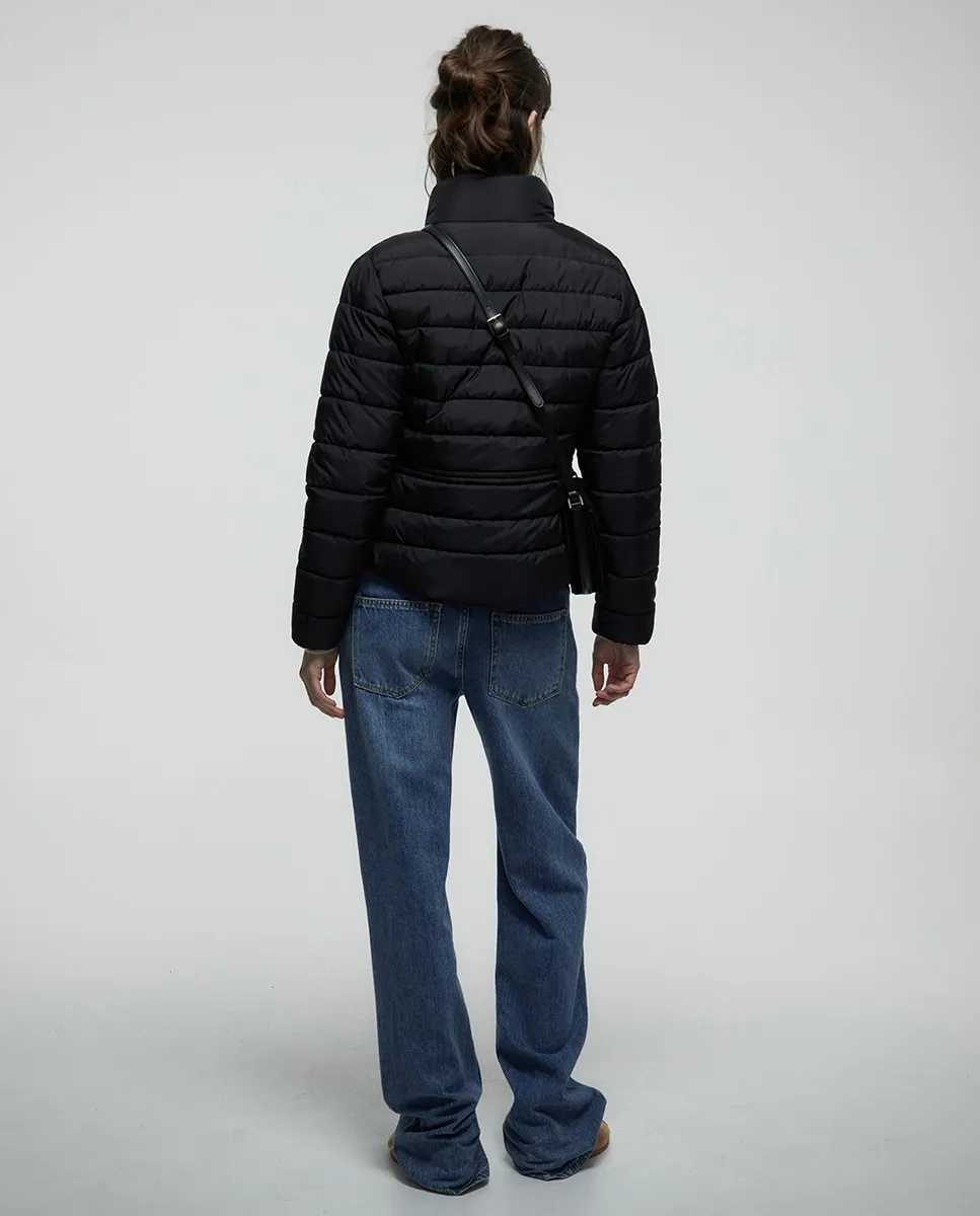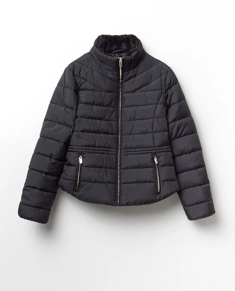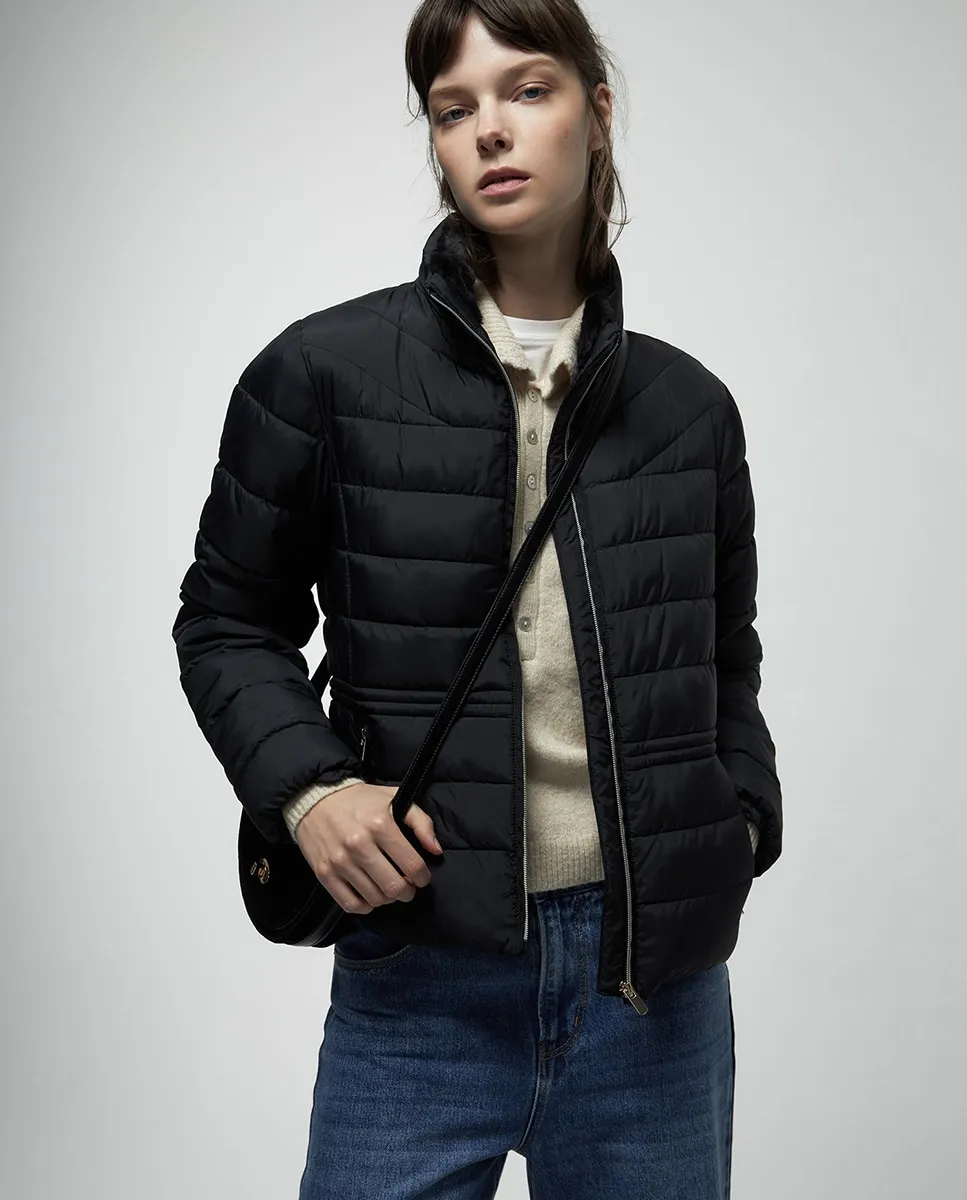 Стеганая парка приталенного кроя с меховой подкладкой внутри. Передние карманы и застежка-молния.