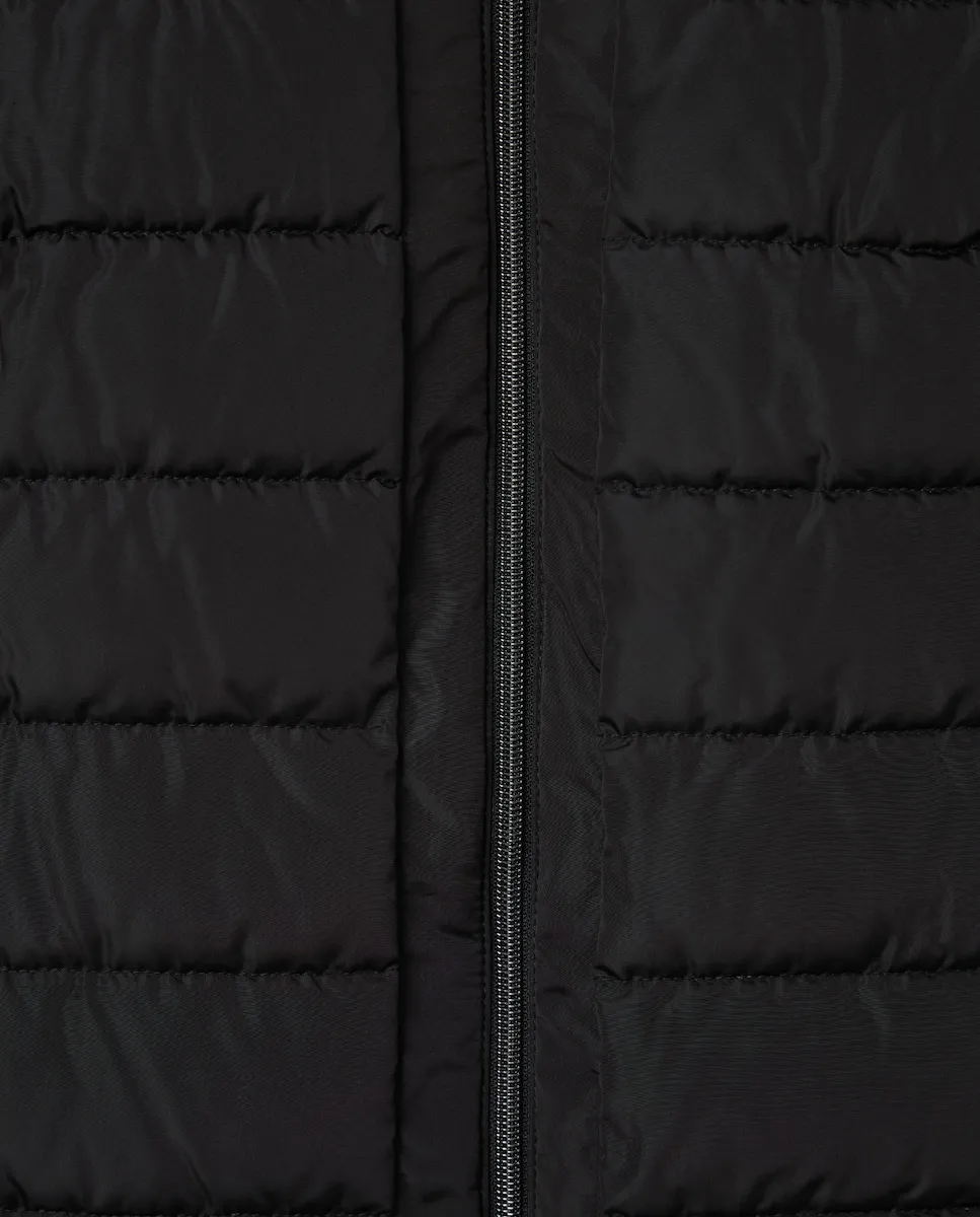 Короткий гладкий пуховик с тканью скуба.