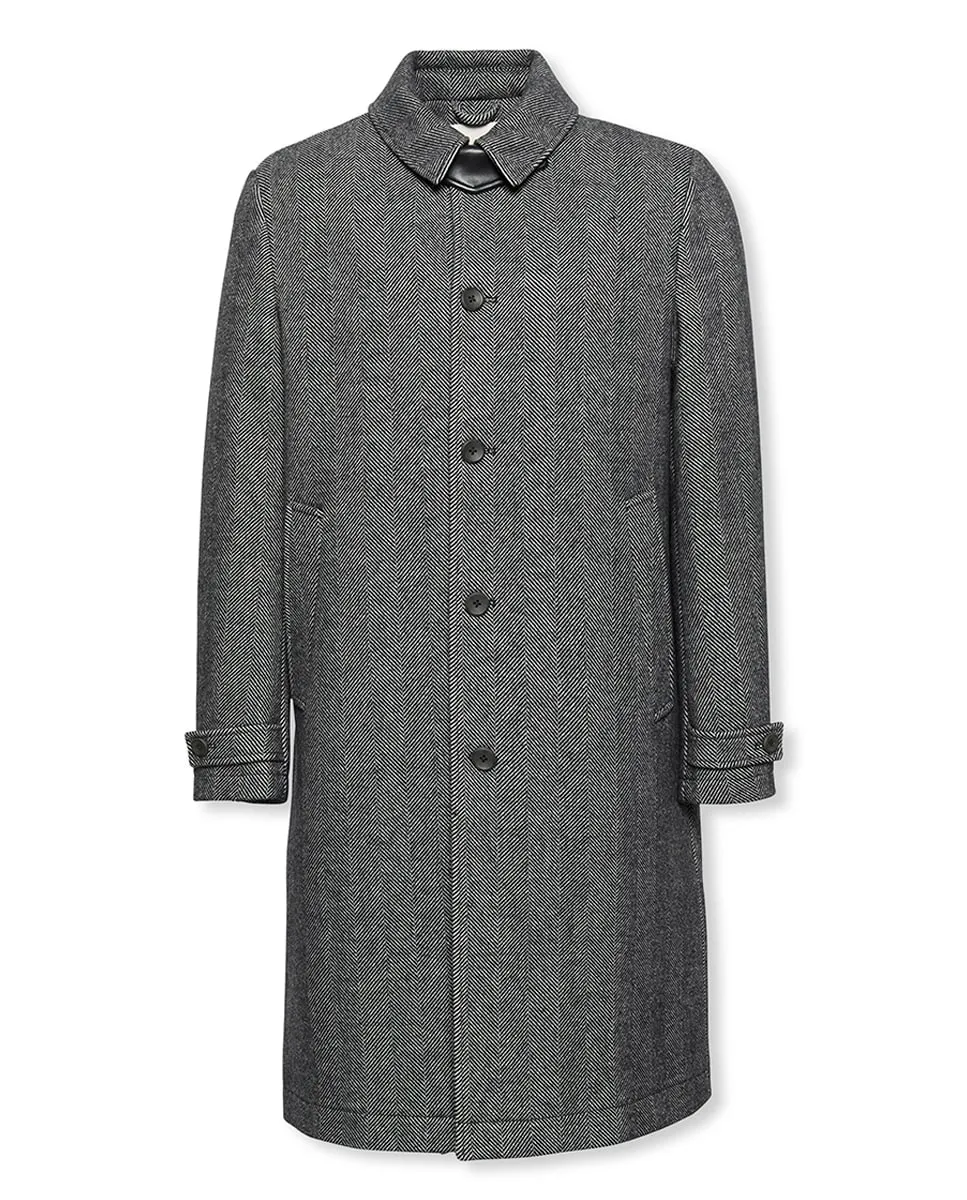 Мужское пальто Calvin Klein, выполненное из шерсти и полиэстера, длинного кроя с петельками на рукавах.