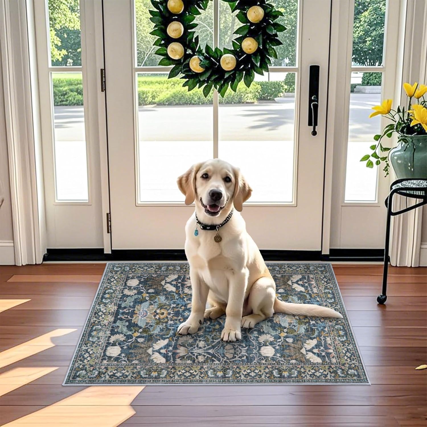 Коврик для прихожей Hy Hao Yun Lai станет практичным и стильным, огненным для вашего дома. Его размер 92×61 см позволяет разместить его даже в компактной прихожей, эффективно удерживая уличную грязь и поддерживая ее. Нежный цветочный узор в синих тонах, тонкий интерьер, огненность и легко сочетается со своеобразными стилями оформления. Коврик изготовлен из прочных материалов, устойчивых к истиранию и деформации. Благодаря простому уходу он долго сохраняет свой первоначальный вид. Упругая основа надежно лежит на поверхности, не скользит и не смещается. Это идеальный выбор для тех, кто ценит чистоту, комфорт и привлекательный дизайн.