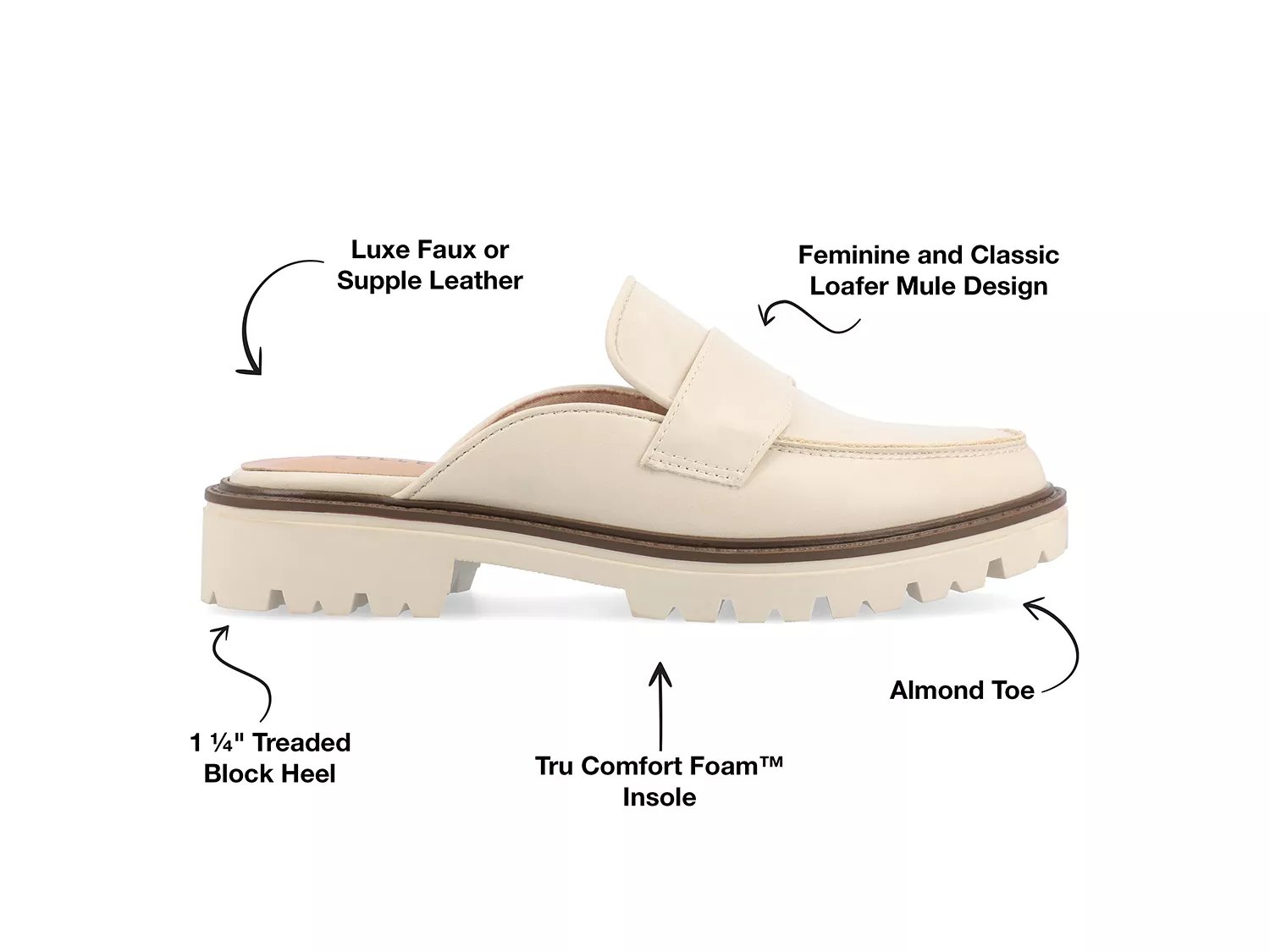 Мюли Miycah из коллекции Journee заслуживают комплиментов, куда бы вы ни отправились. Мюли-лоферы с современным миндалевидным носком обеспечивают идеальный подъем благодаря массивному каблуку и изящной платформе. Стелька из пеноматериала Tru Comfort обеспечит комфорт на весь день.