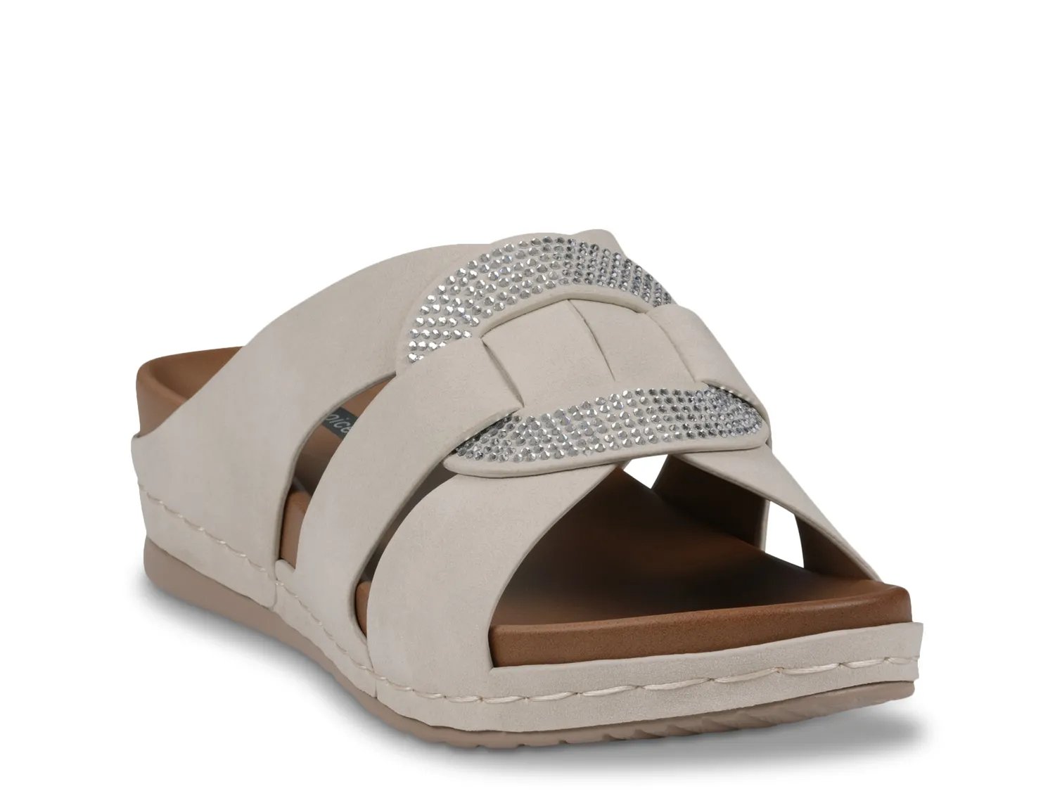 В этих стильных босоножках Betsy от Good Choice гламур сочетается с непринужденностью. Широкие перекрещивающиеся ремешки сверкают стразами, придавая этим босоножкам слипоны смелый, но изысканный вид. Мягкая стелька и прочная подошва обеспечат вам комфорт как в утренних походах, так и в вечерних нарядах.