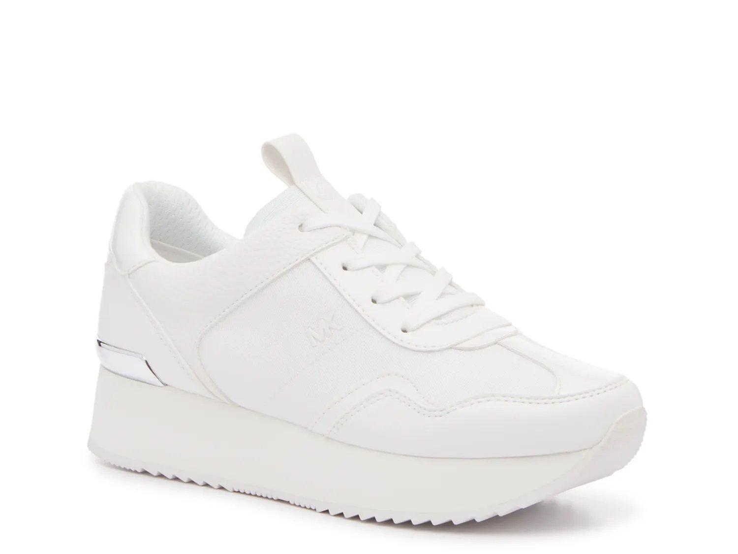 Экспериментируйте со своим спортивным стилем в кроссовках Michael Michael Kors Raina Trainer на танкетке. Эти кроссовки на шнуровке имеют однотонный верх с металлической отделкой на пятке. Массивная подошва и сплошной каблук выводят образ на новый уровень.