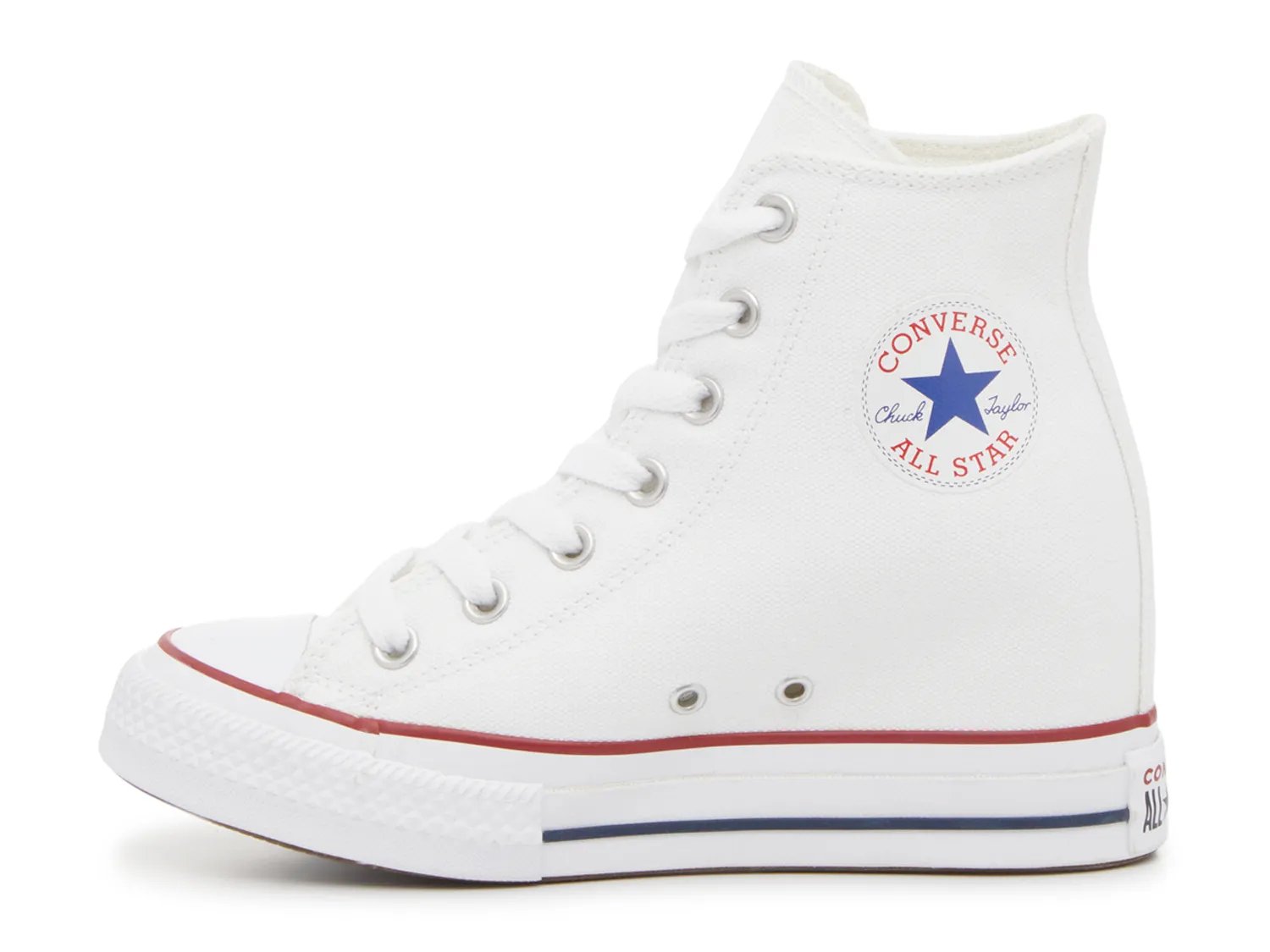 Добавьте модный штрих к классическому силуэту с высокими кедами на танкетке Chuck Taylor All Star от Converse. Эти кроссовки сохранили силуэт оригинальной модели, дополненный закругленным носком, вулканизированной промежуточной подошвой и высоким голенищем для надежной посадки. Теперь со скрытым каблуком этот образ выходит на новый уровень.